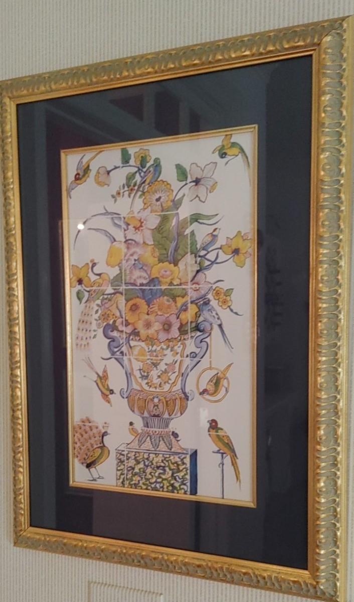 #7 Gorgeous Oriental Peacock Framed Prints one looks like a tile print. Both are different, but where purchased together @ a fine department store.