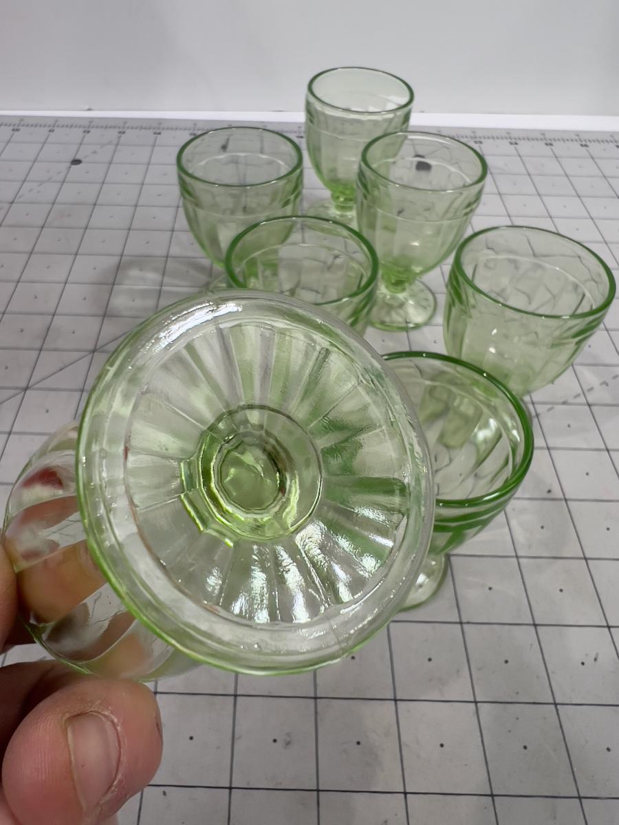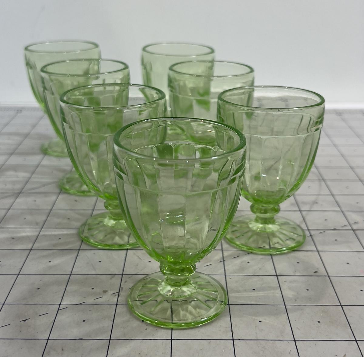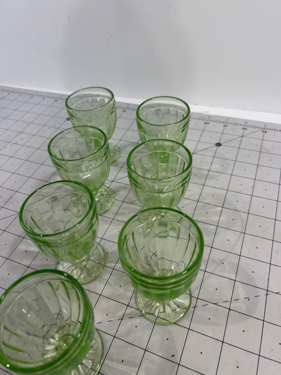 7 Green Depression Glass Small Goblets Cordial or Childs Size