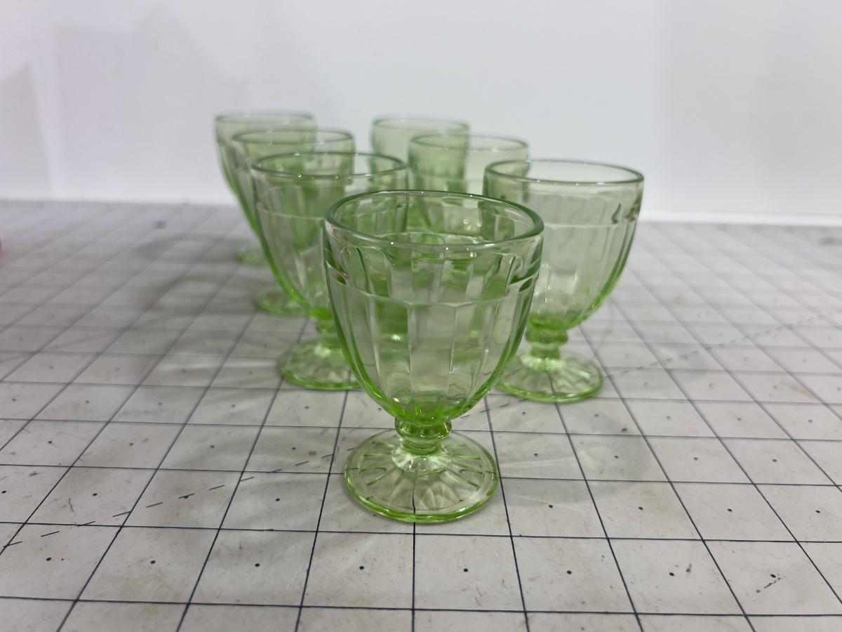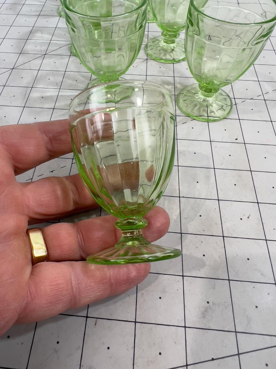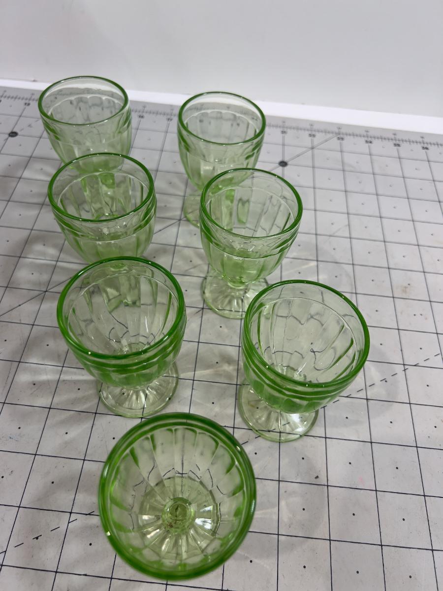 7 Green Depression Glass Small Goblets Cordial or Childs Size