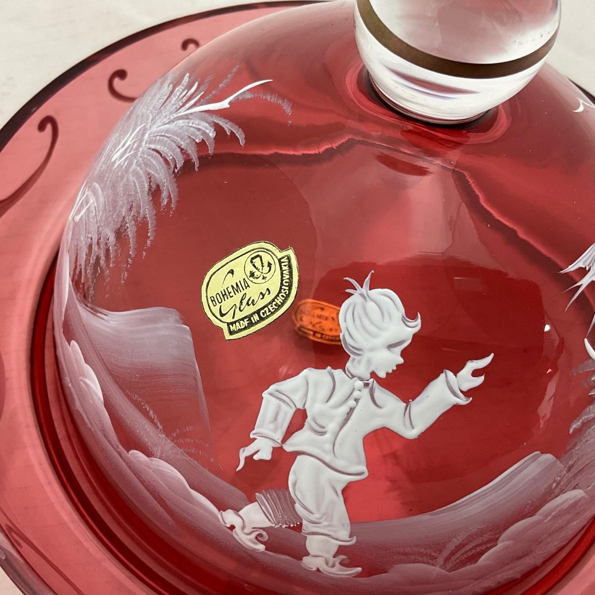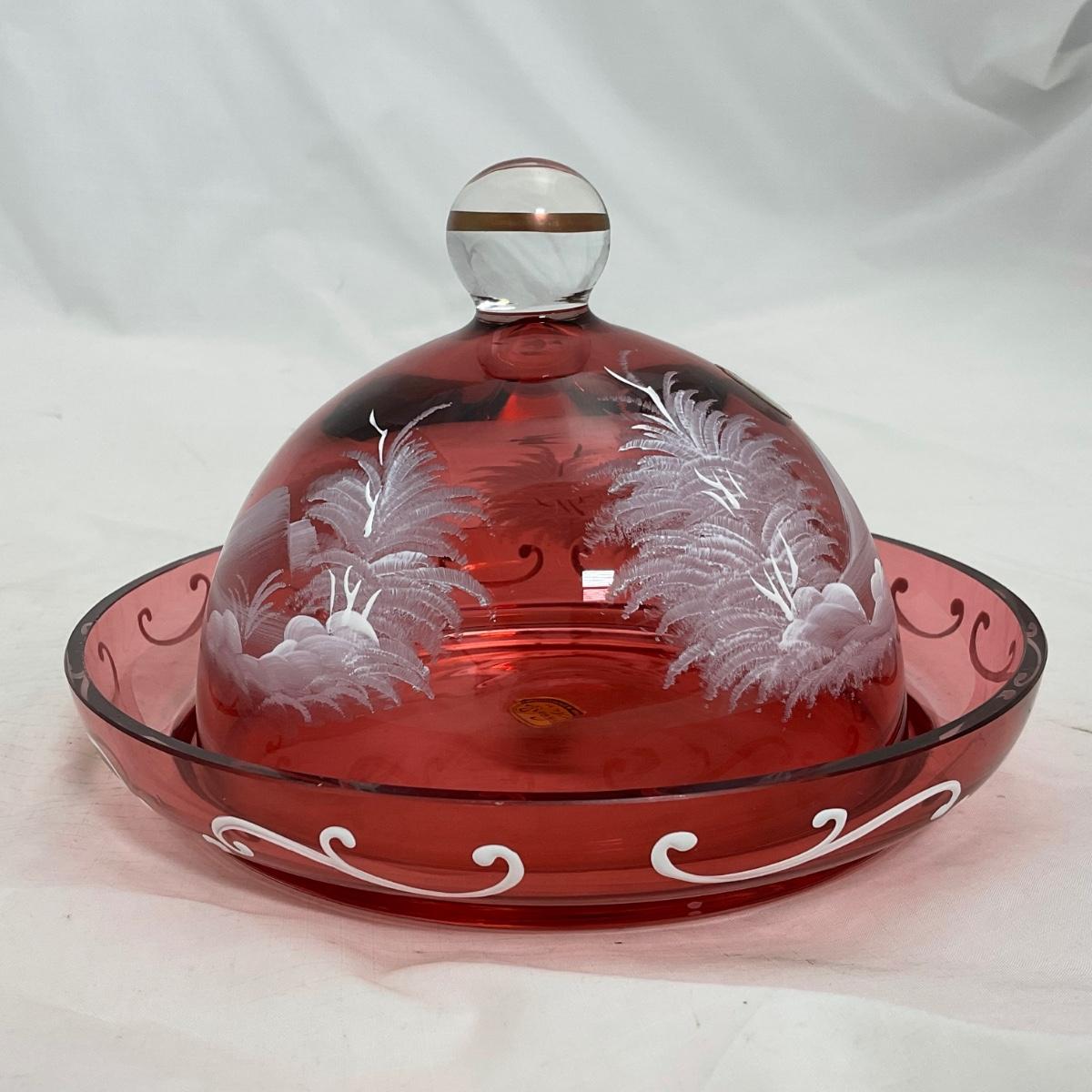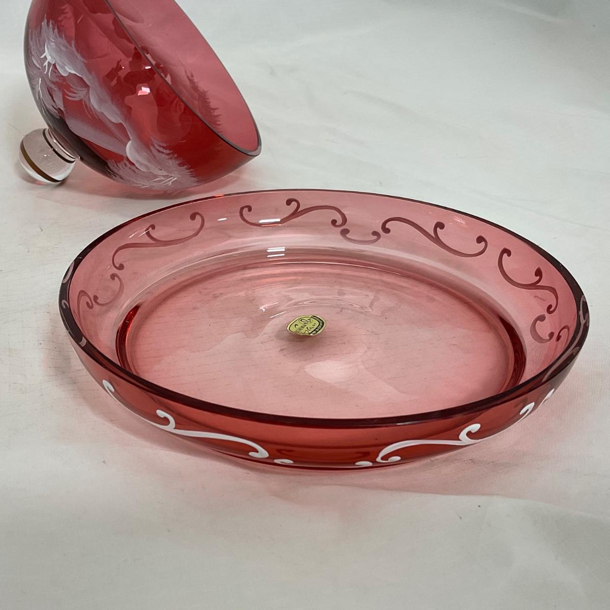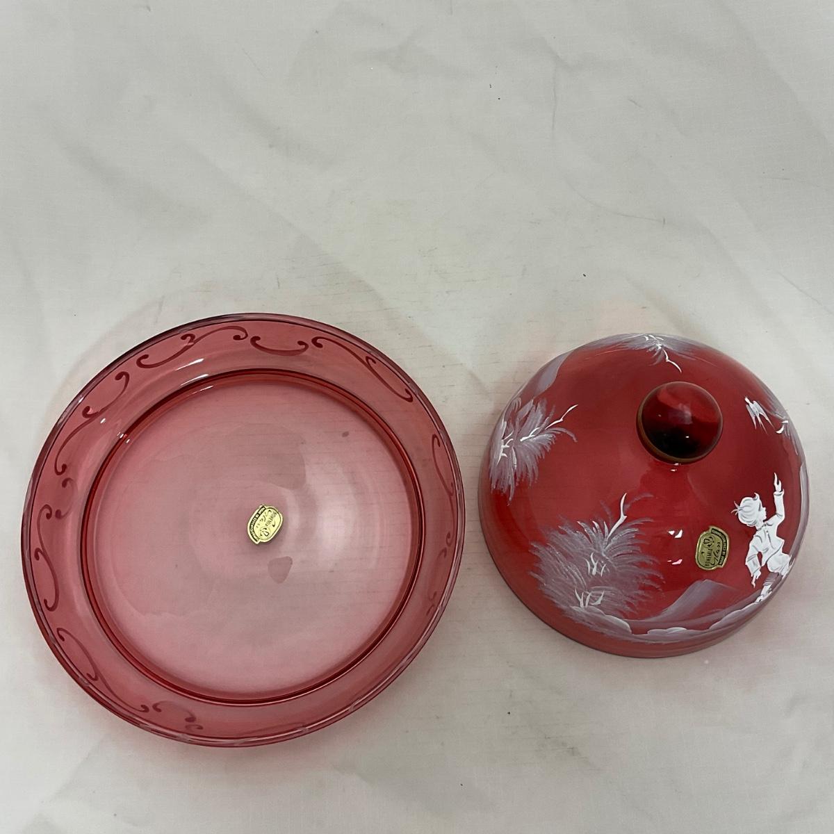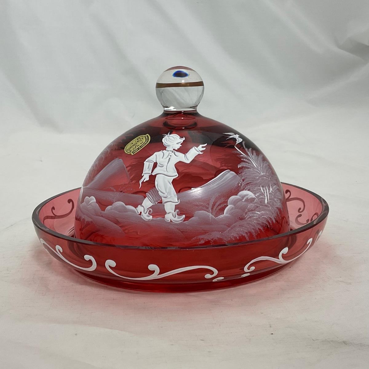 -7- Hand Painted Cranberry Colored | Mary Gregory Covered Butter Dish
