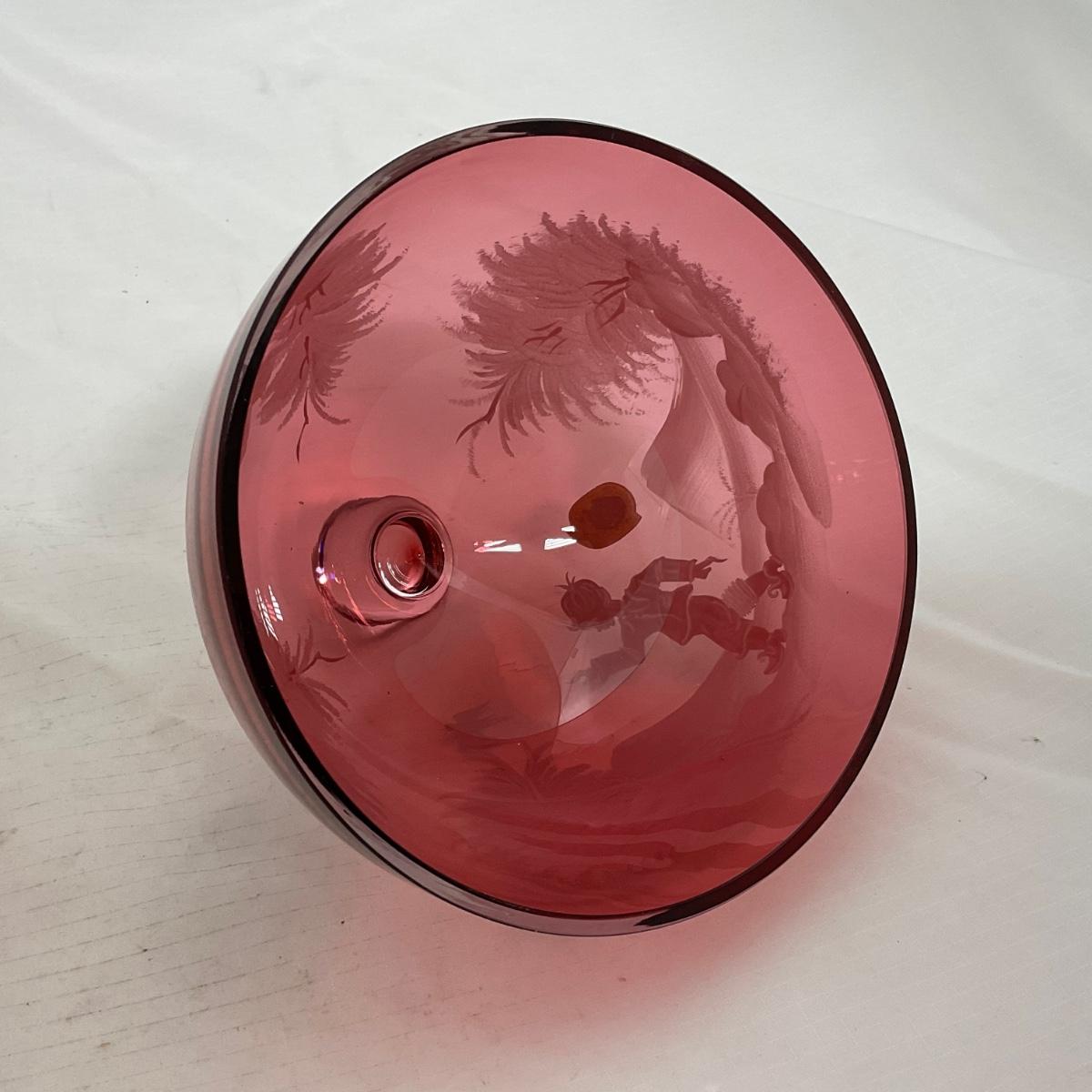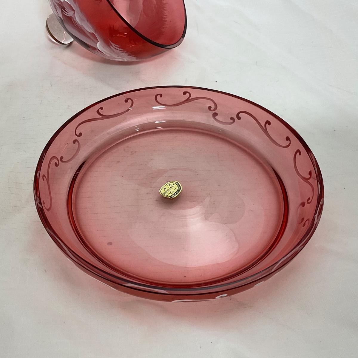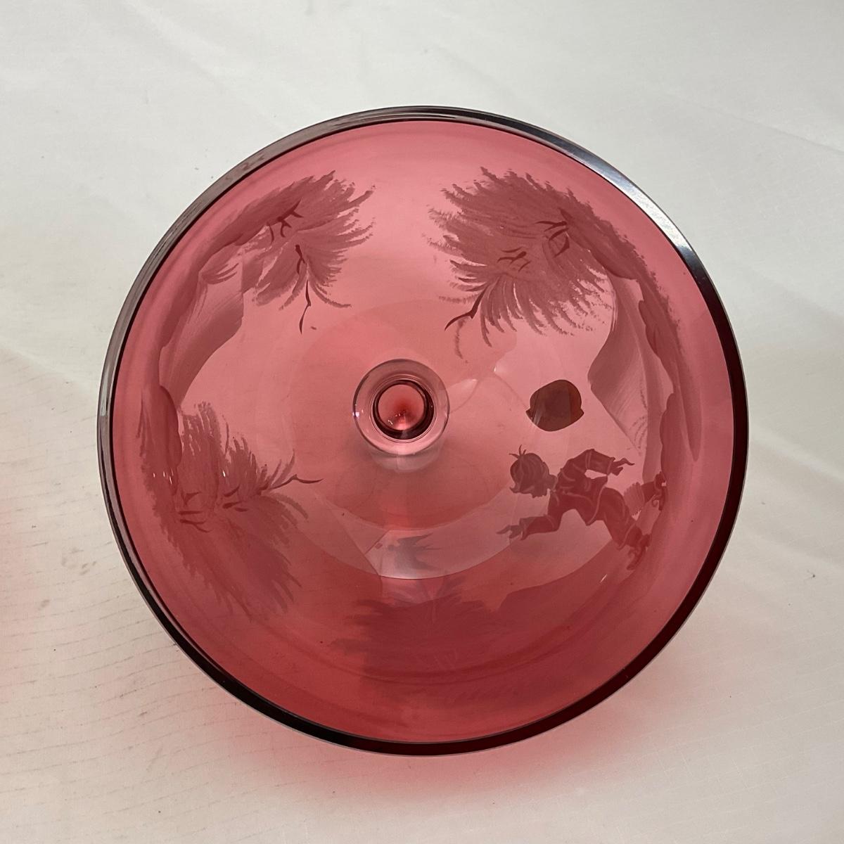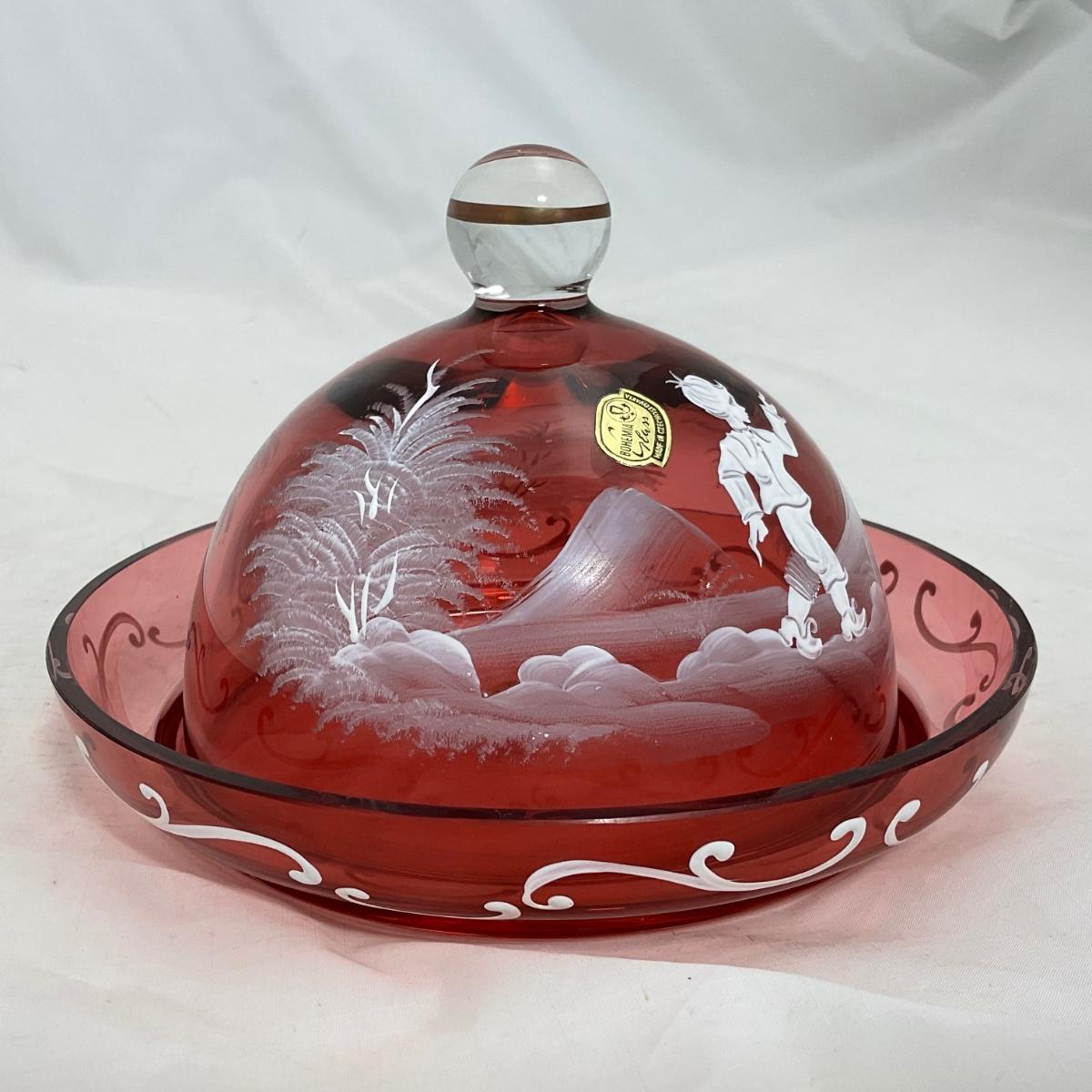 -7- Hand Painted Cranberry Colored | Mary Gregory Covered Butter Dish