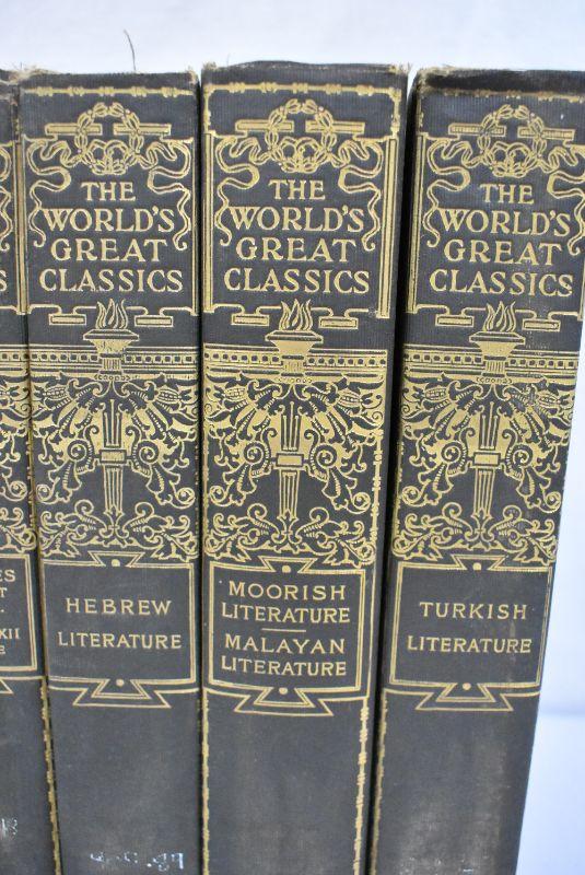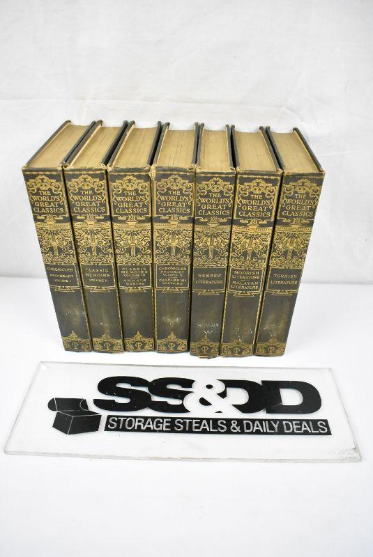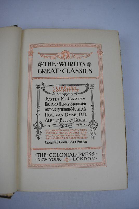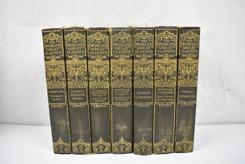 7 Hardcover Books "The World's Great Classics" Dark Green/Brown with Gold. Antique 1901