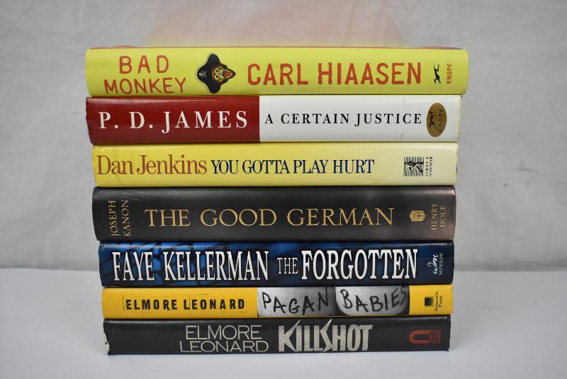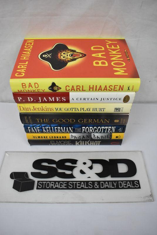 7 Hardcover Fiction Books: Authors Carl Hiaasen -to- Elmore Leonard