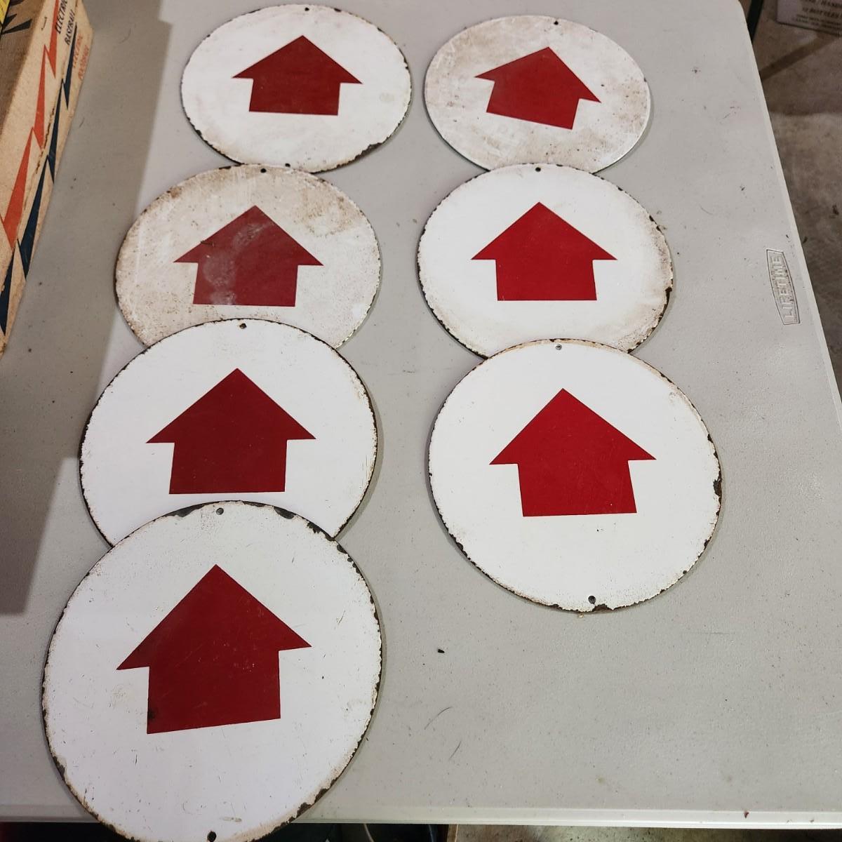 7 Heavy Metal Enamel Directional Arrow Signs 8" Diameter