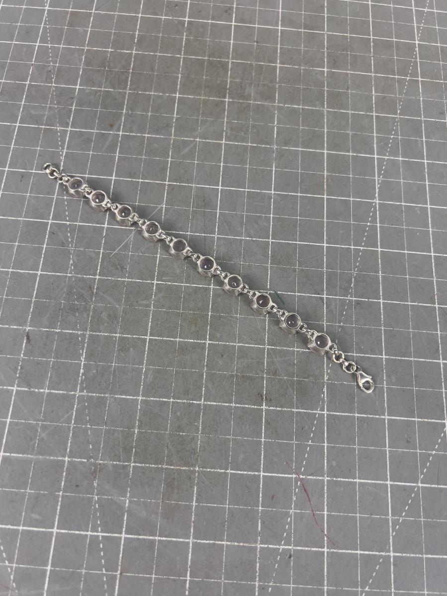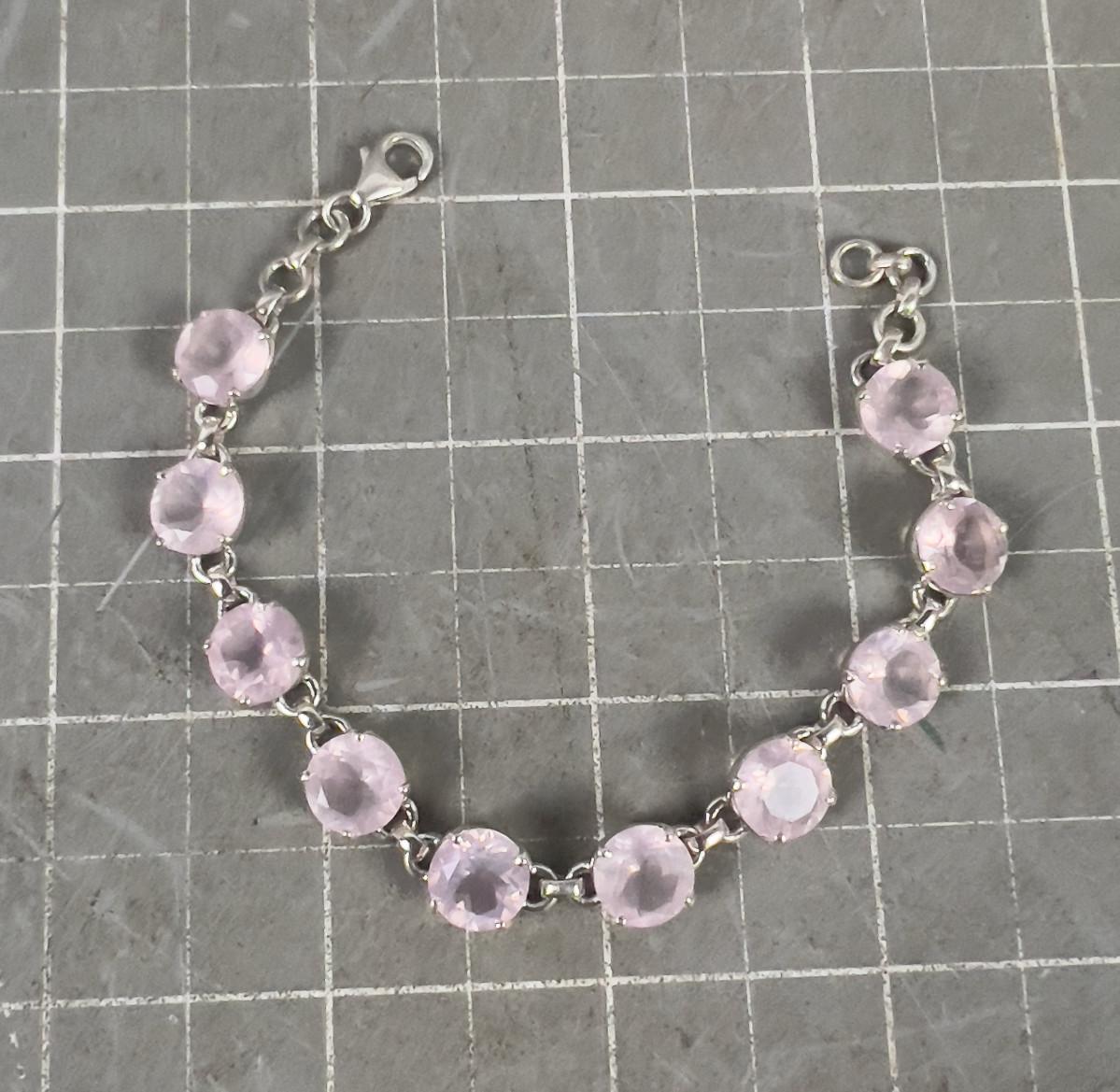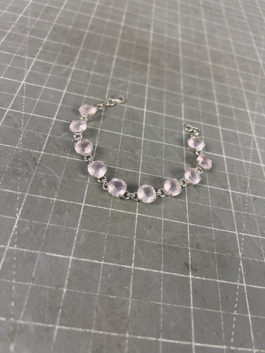 7 Inch Cut Stone Rose / Pink Quartz Set in Sterling Bracelet