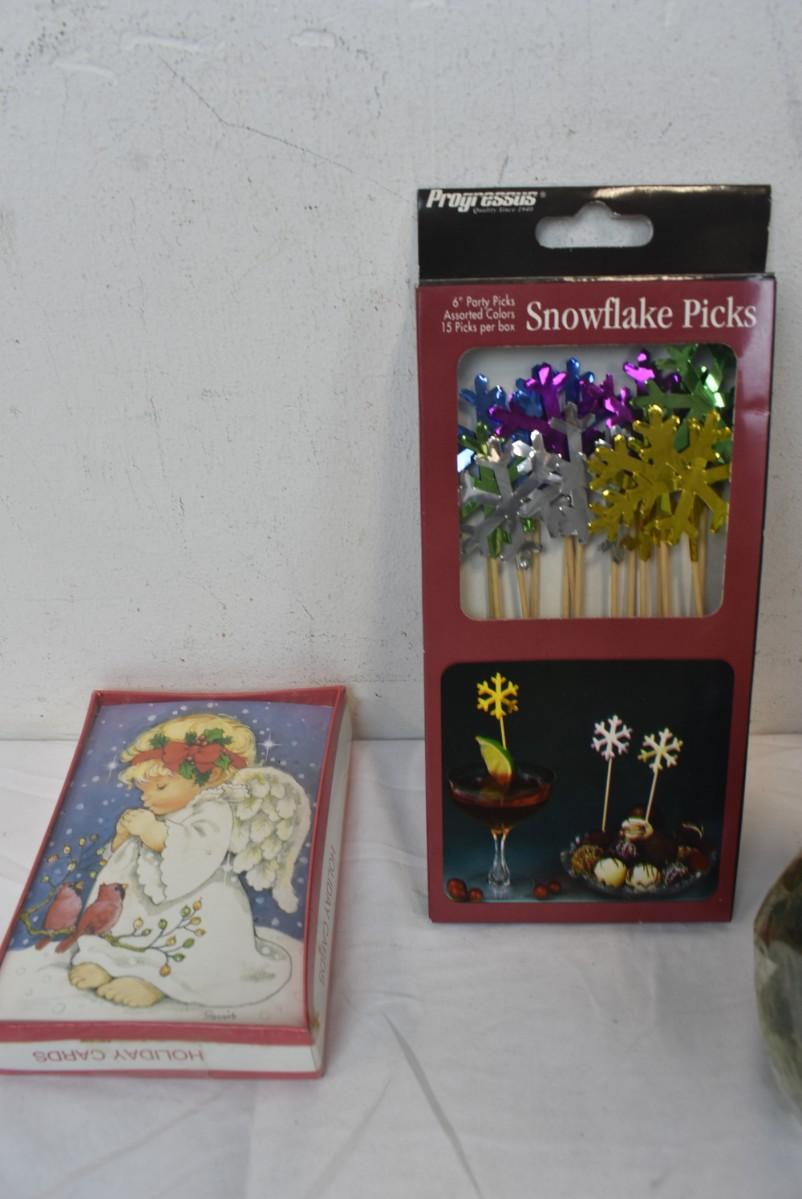 7 Items of Christmas: Tree Candle, 4-Piececutter, Snowflake Picks, Cards - New