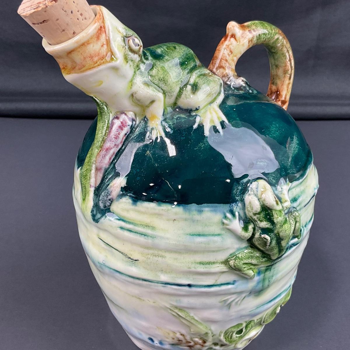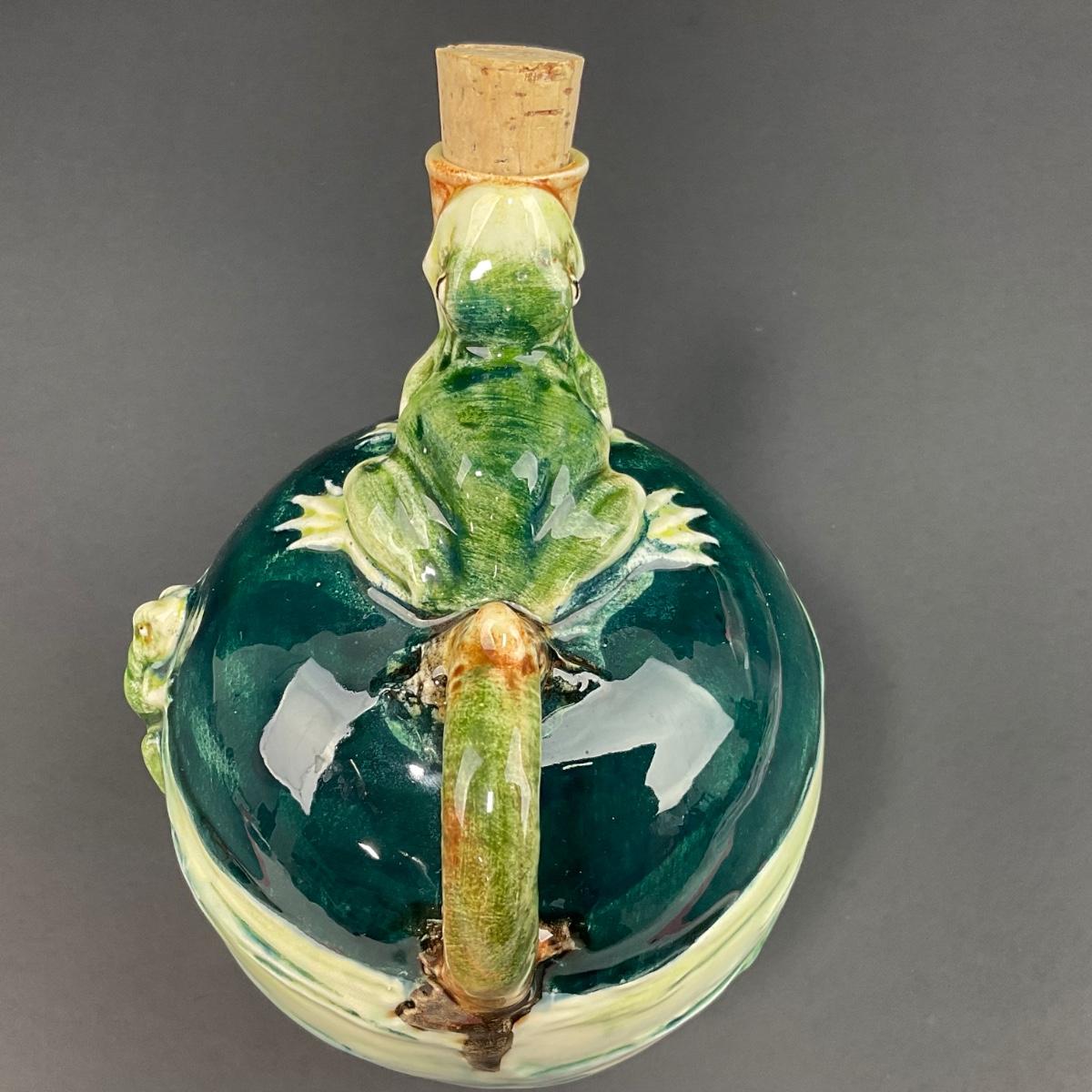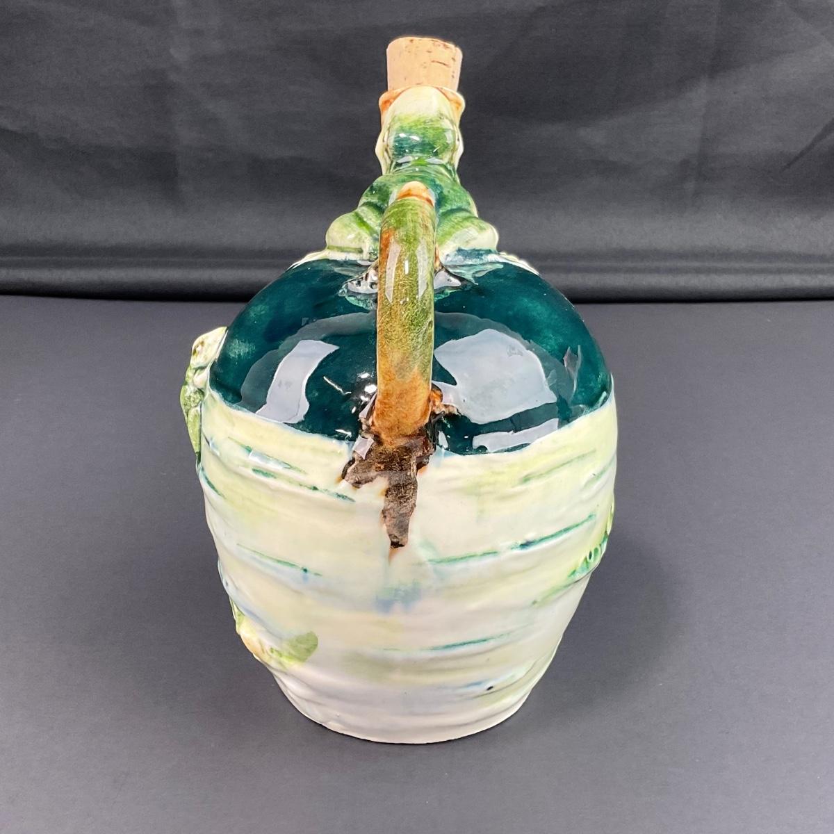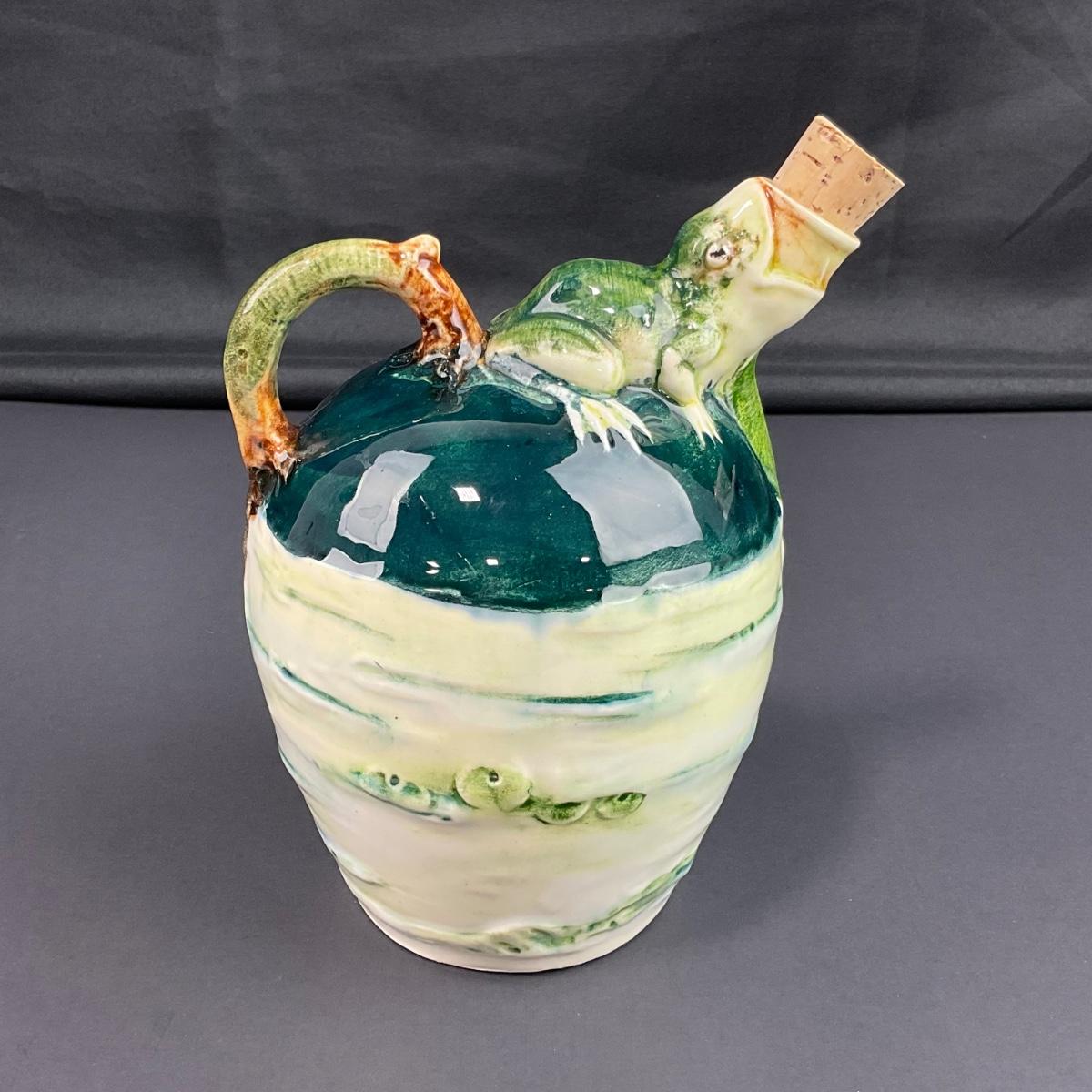 -7- MAJOLICA | Vintage Small Pitcher Jug With Frogs & Water Lilies