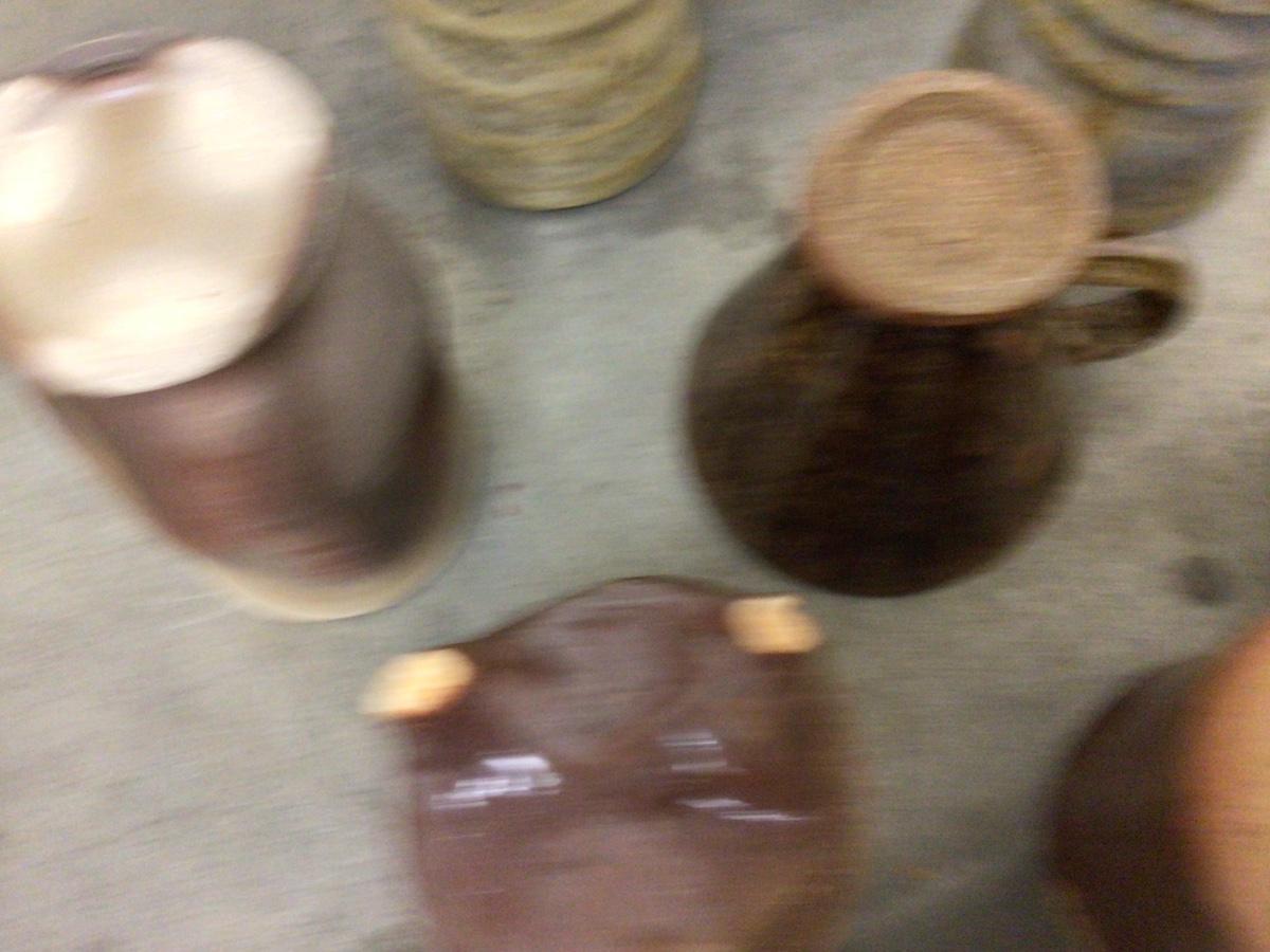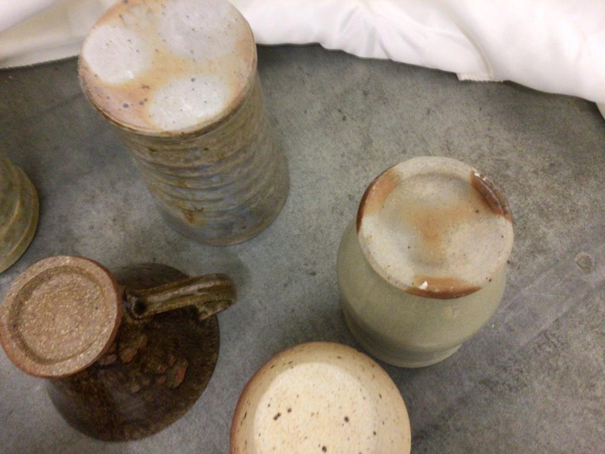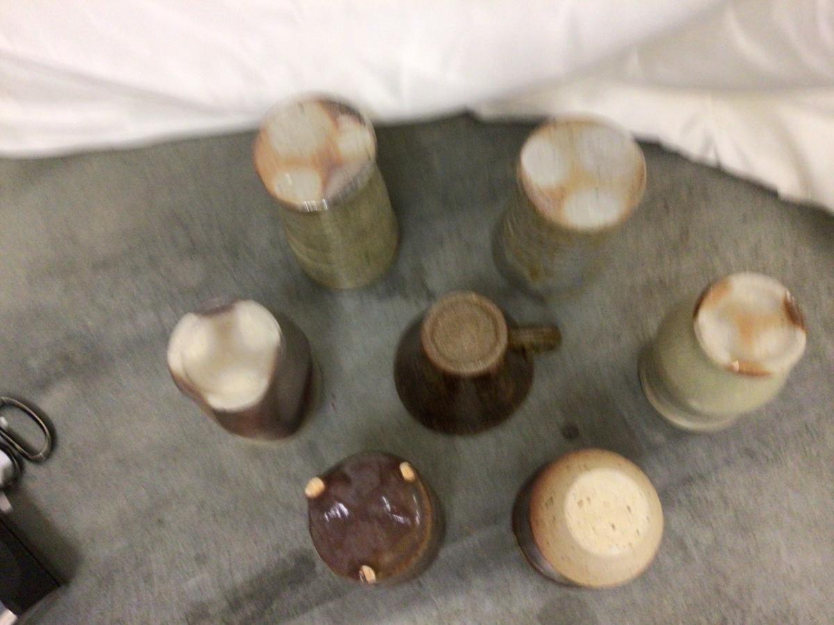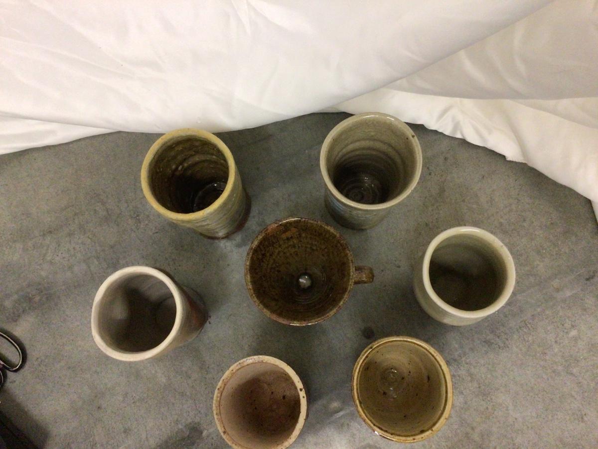 You get two pottery vases, three pottery glasses or vases and a pottery coffee mug.