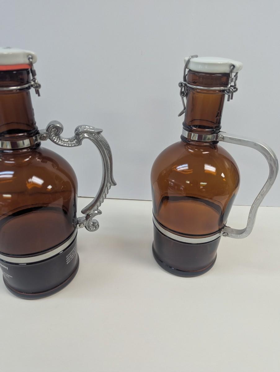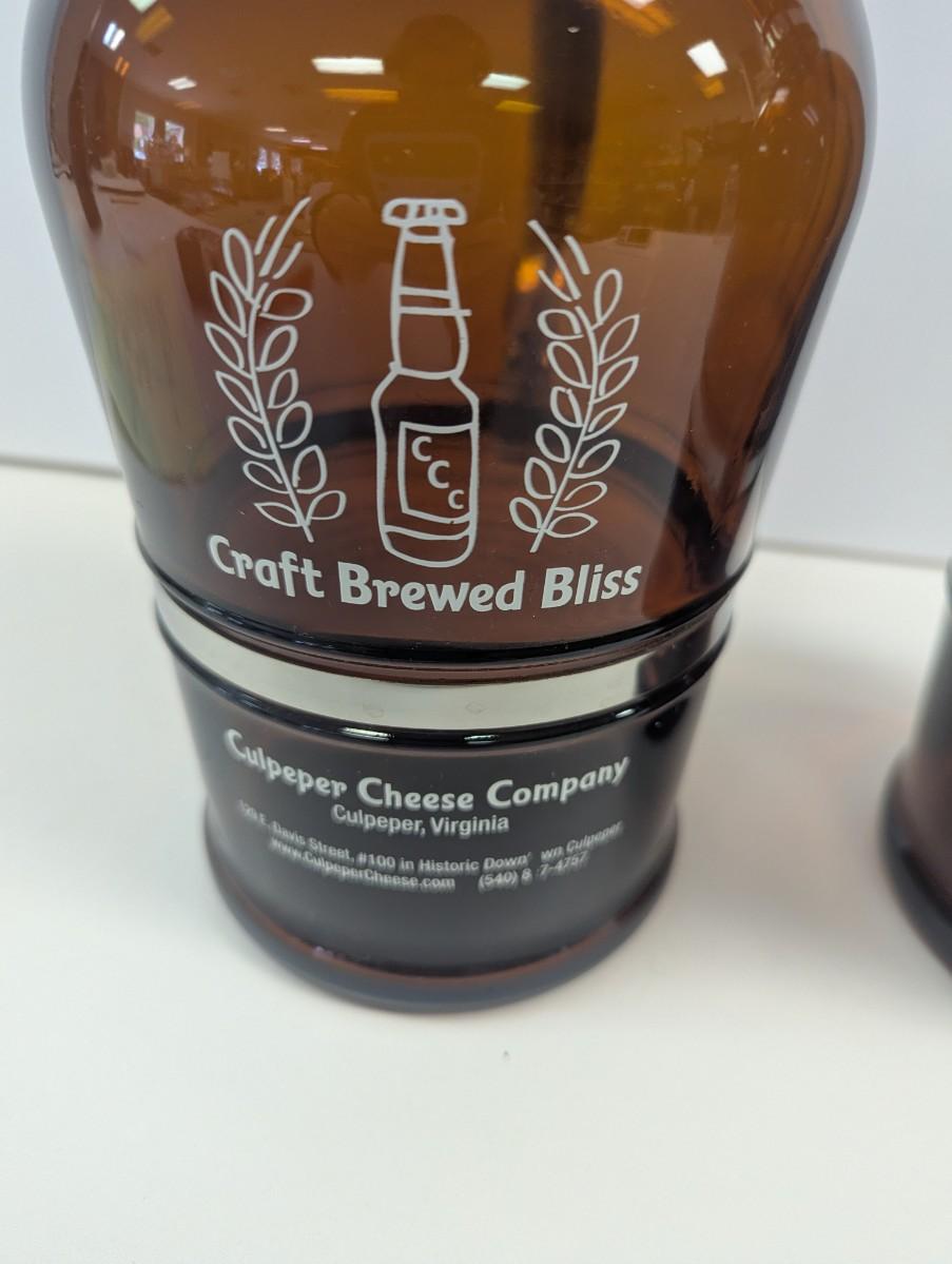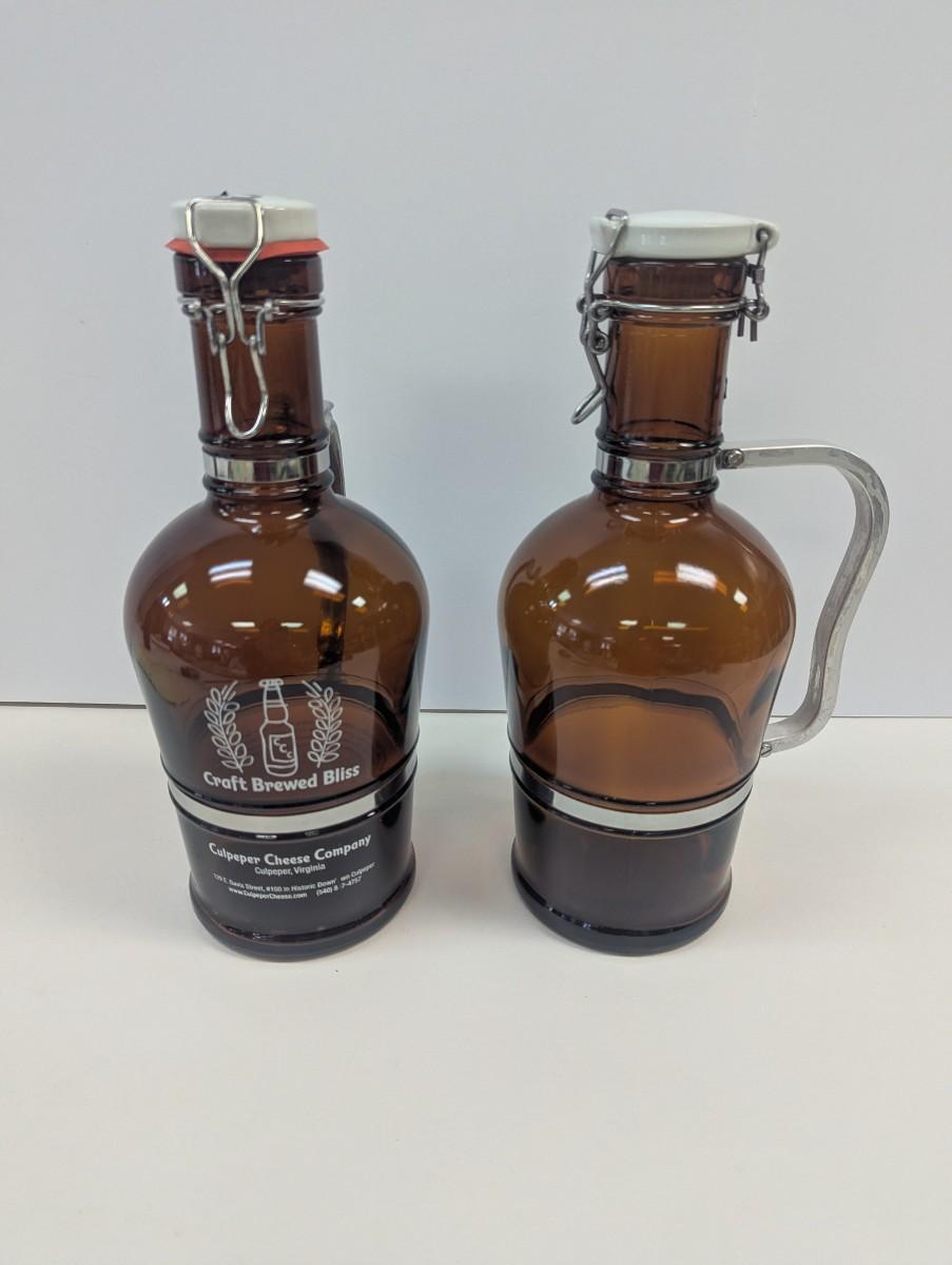 2 - Muster Geschutzt 2 Liter Brown Glass Aluminum Handled Beer Growler Bottles Craft Brewed Bliss Culpepper Cheese Co. Virginia