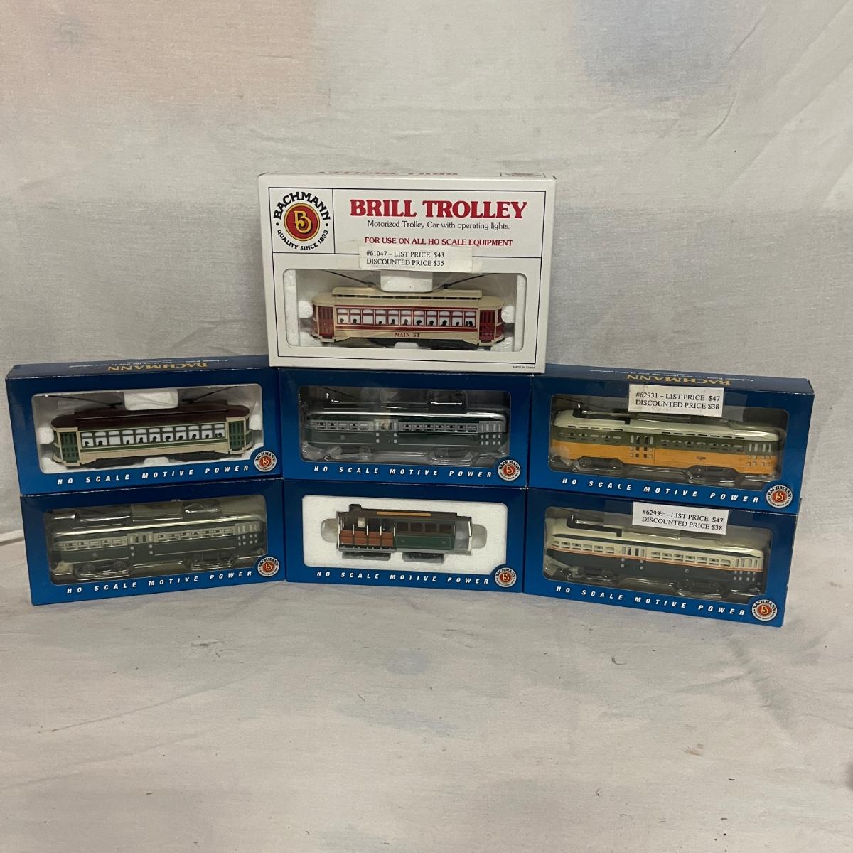 7 NIB Bachmann HO Trolley Cars (W-MG)