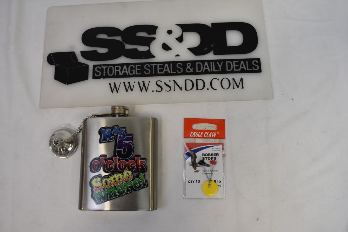 7 oz Stainless Steel Flask "5:00 Somewhere" and 10 Bobber Stops - New