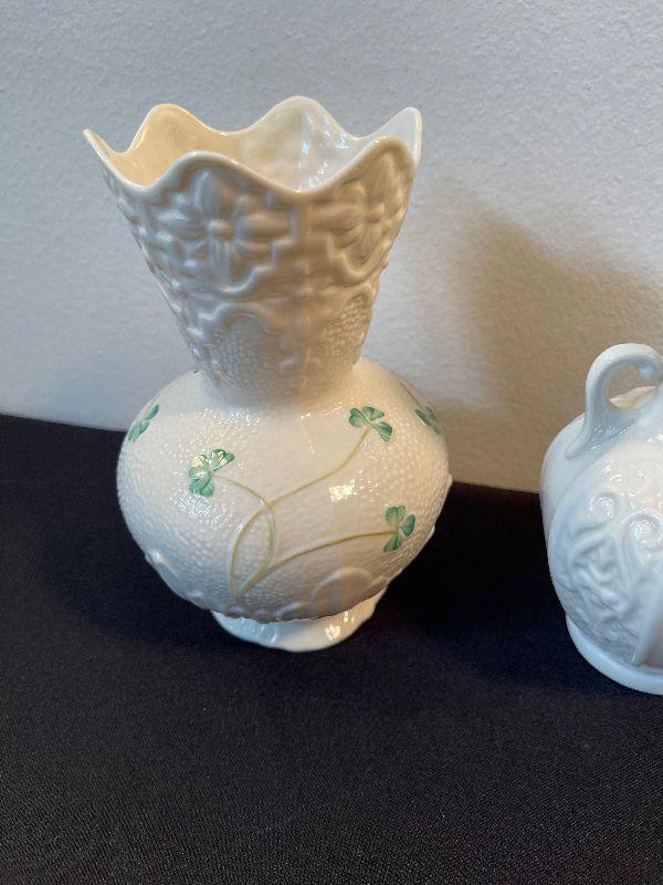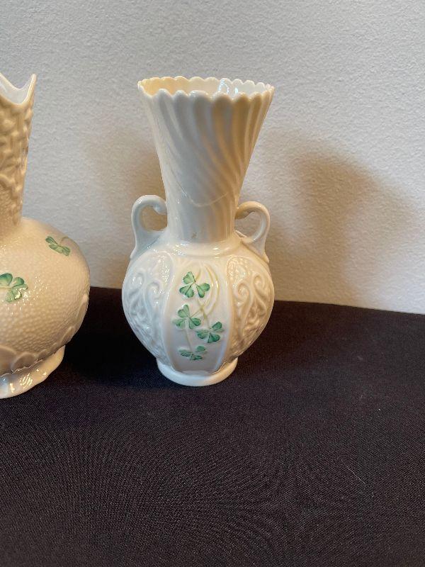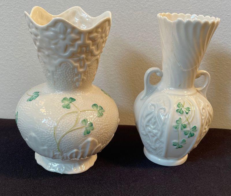#7 Pair of Irish Belleek Vases with Shamrocks