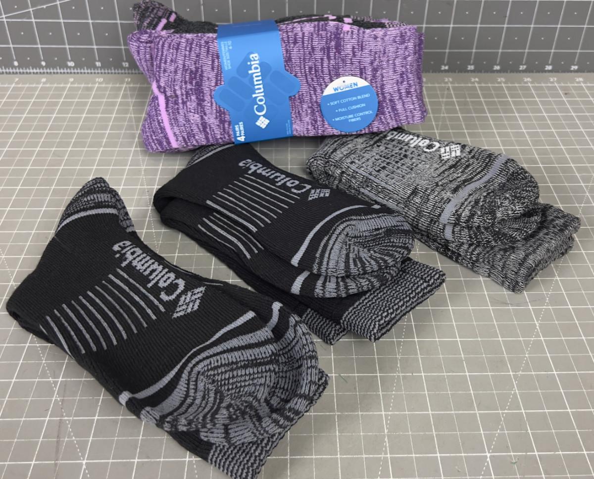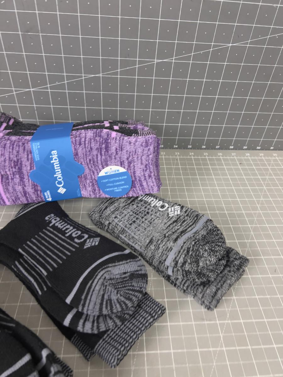 7 Pair of NEW COLUMBIA Socks Purple and Black NEW