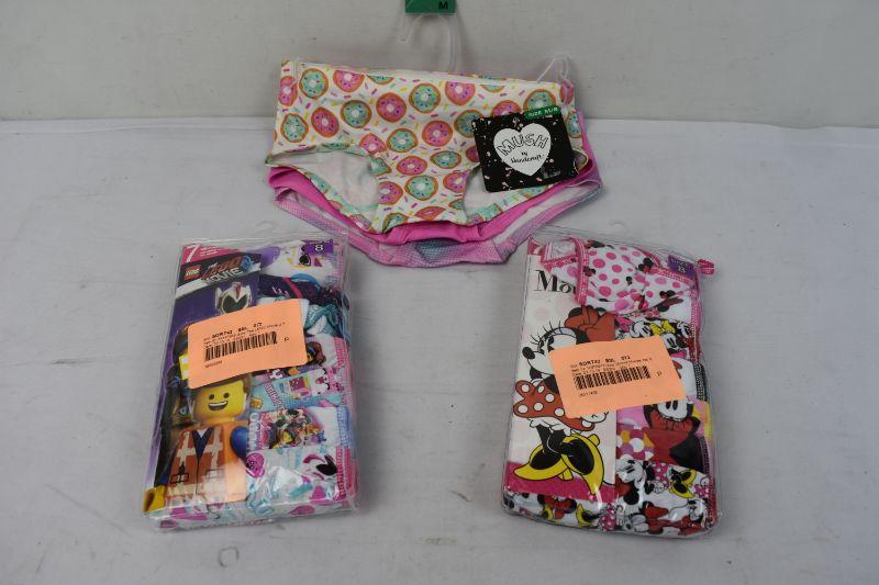 7 Pairs Girls Underwear Size 8: 7 Lego Movie, 7 Minnie Mouse, 3 Generic - New