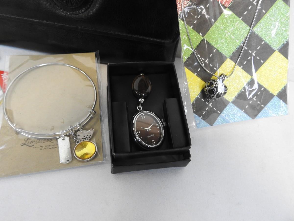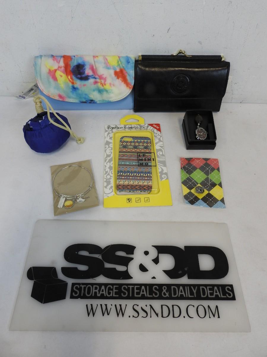7 pc Accessories Lot: 2 wallets, Phone case, Necklace, Bracelet, Bag - New