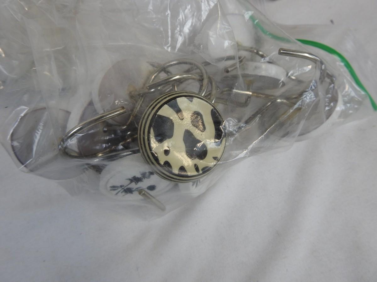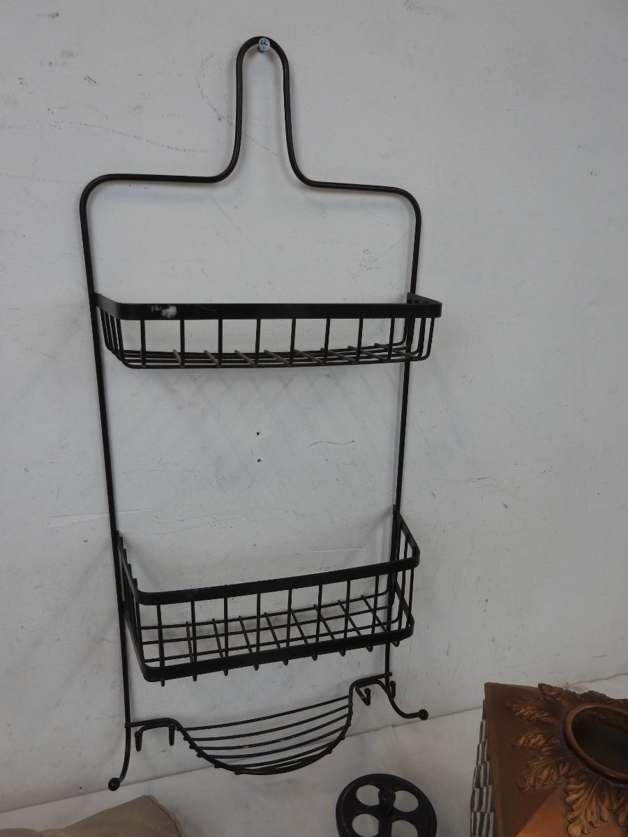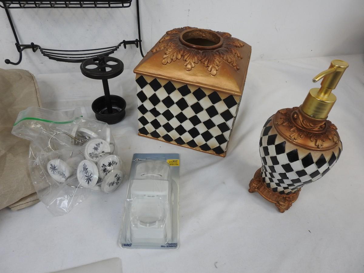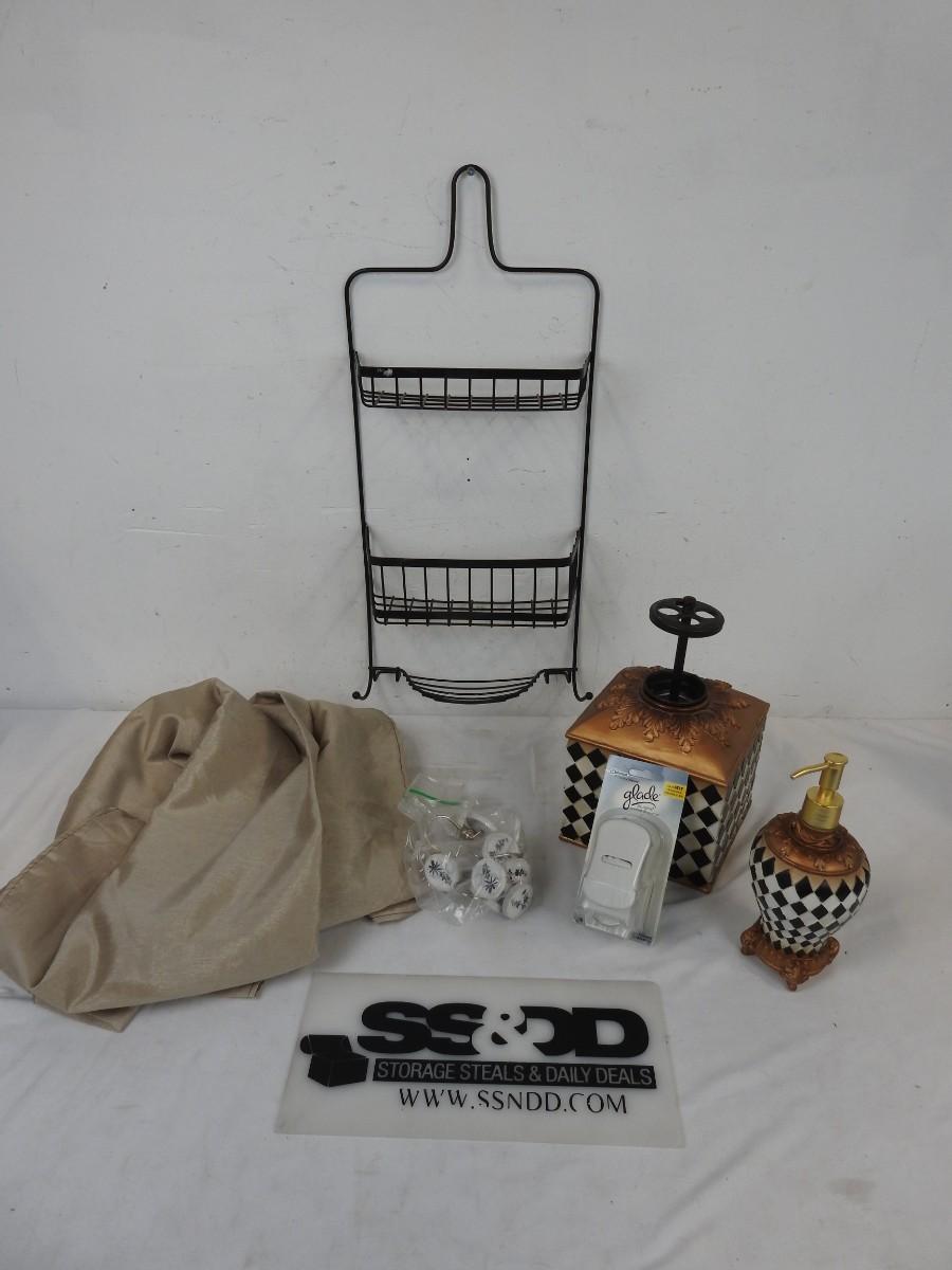 7 pc Bathroom Decor: Shower Curtain, Soap Pump, Shower Rack, Toothbrush Holder