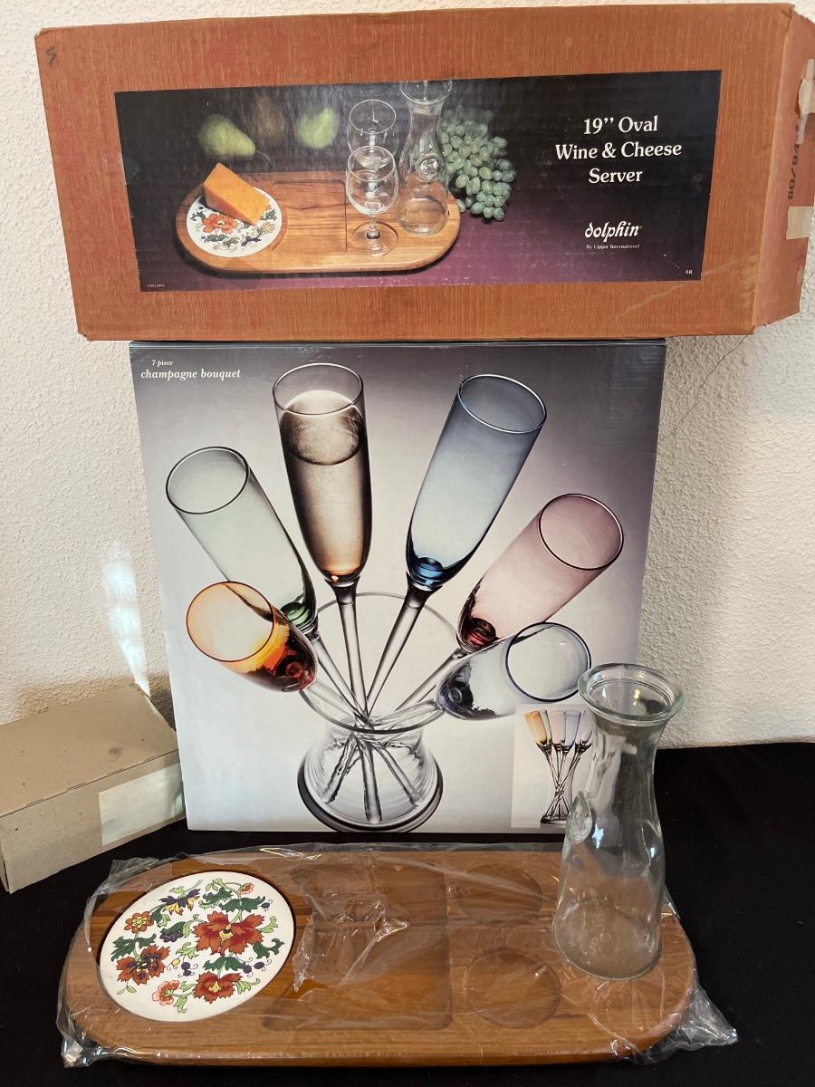 7 pc Champagne, bucket, and wine and cheese