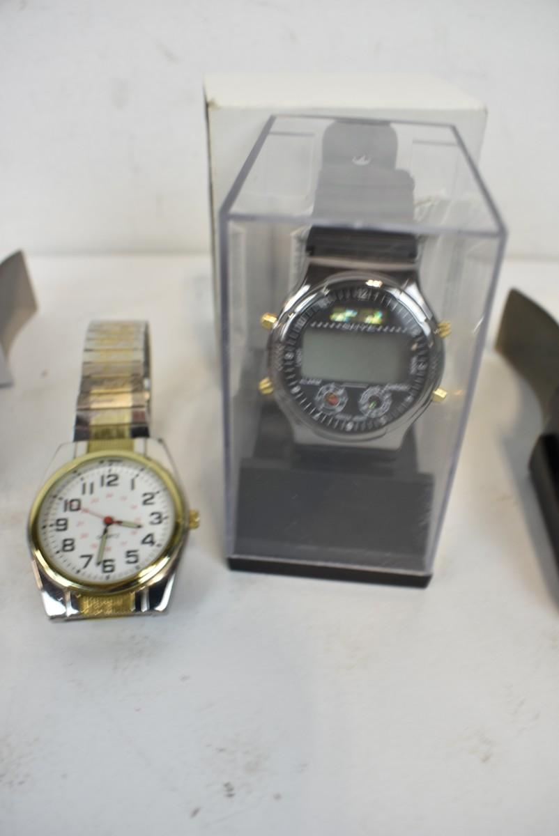 7 pc Costume Jewelry: 3 necklaces 2 watches 2 pairs of earrings