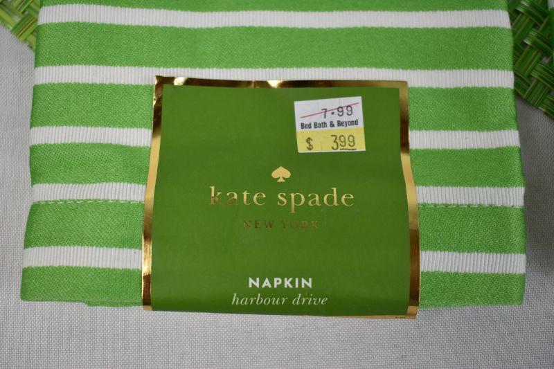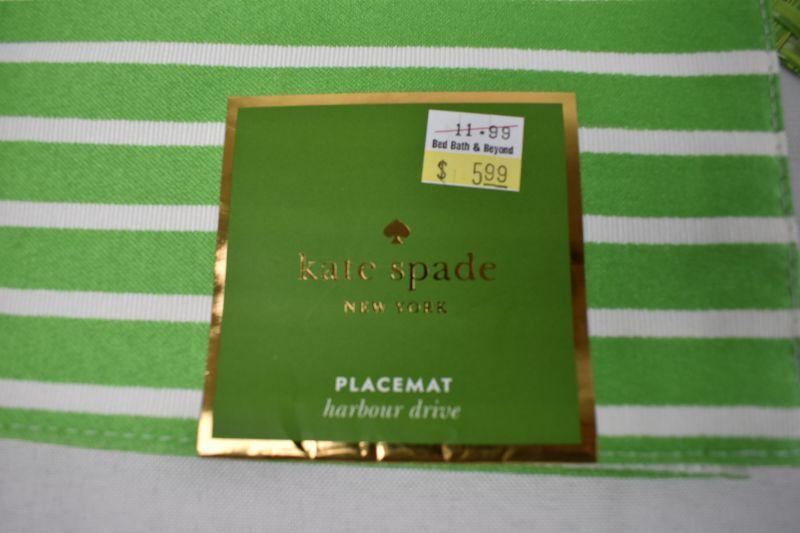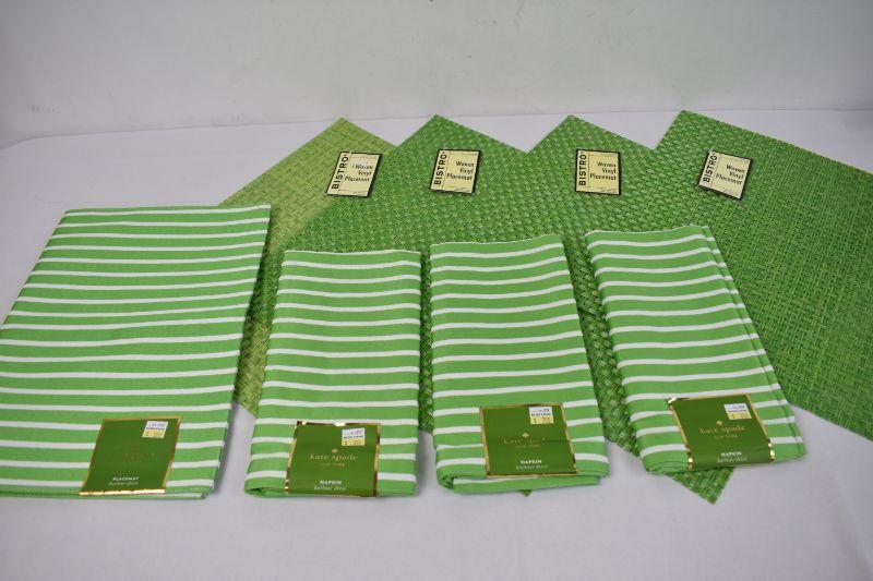 7 pc Green Table Decor: 4 Vinyl Placemats, 3 Kate Spade Striped Cloth Napkins, 1 Striped Kate Spade Placemat - New