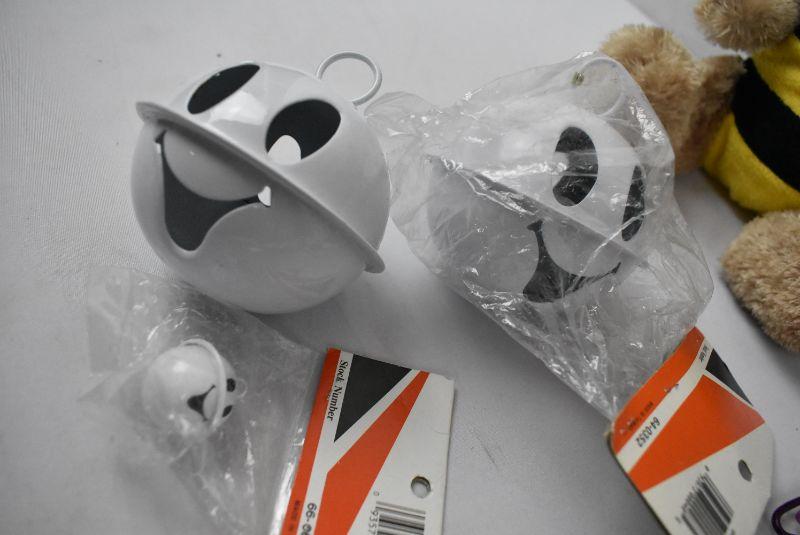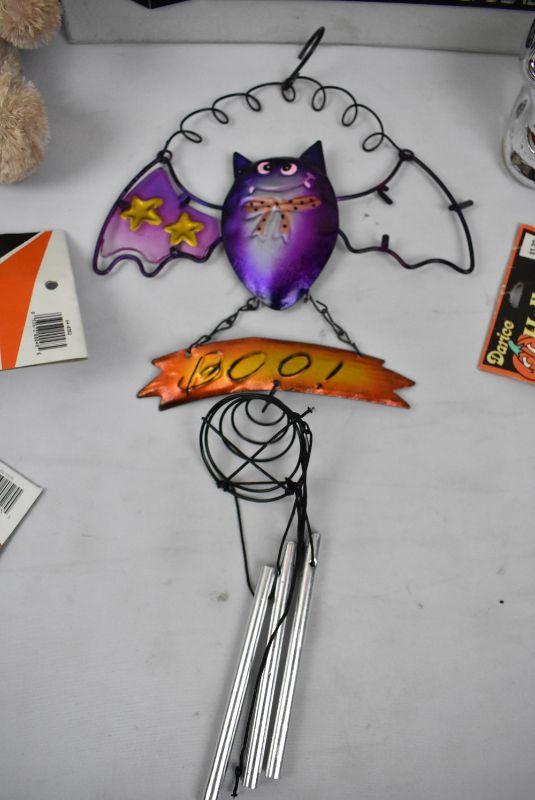 7 pc Halloween Decor: Bear Wearing Bee Costume, Wind Chimes, Bells & More