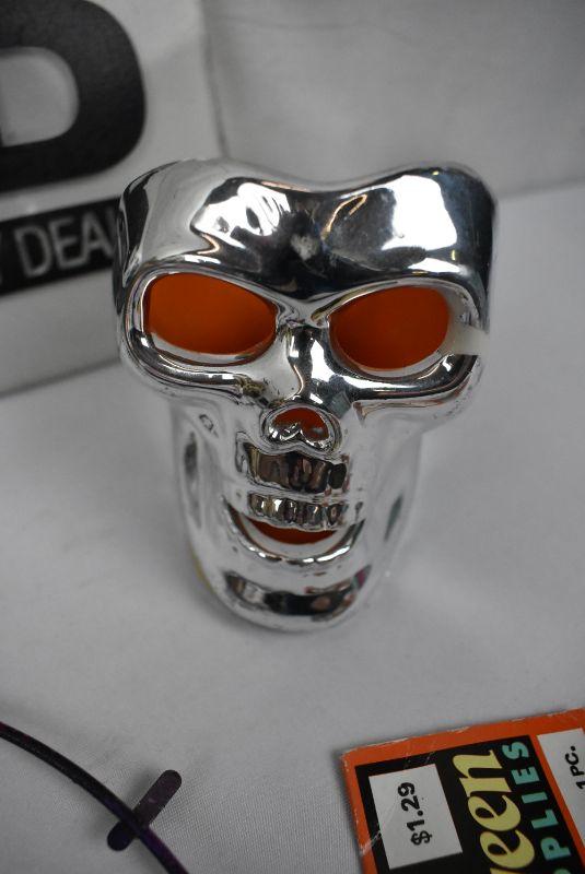 7 pc Halloween Decor: Bear wearing Bee Costume, Wind Chimes, 4 Bells, 1 skull Candle holder