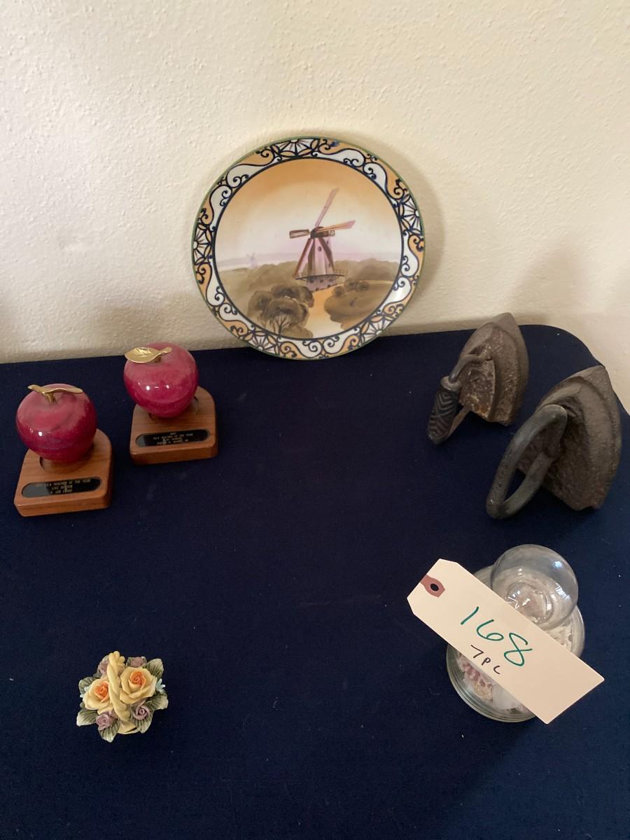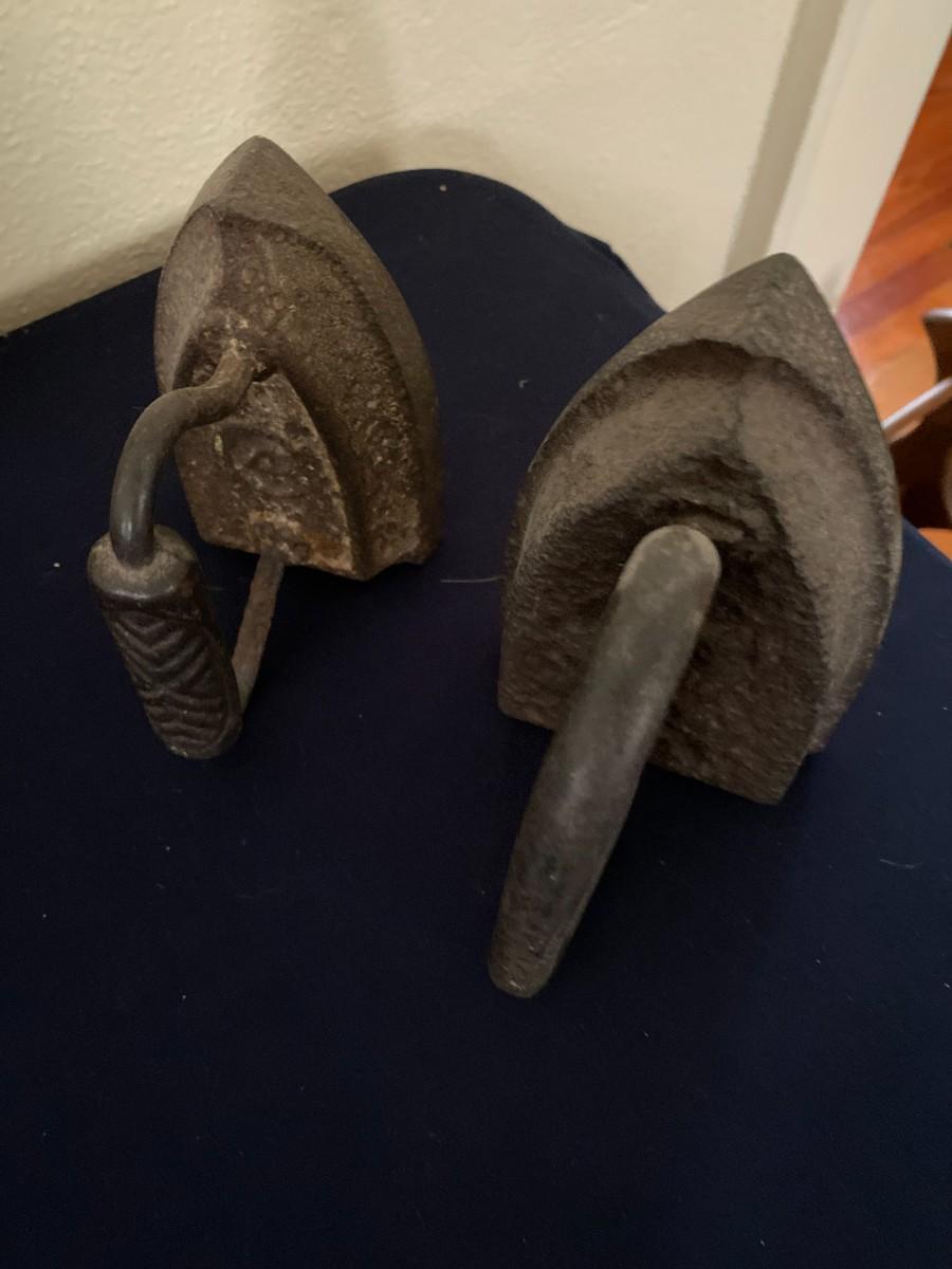 2 Cast Iron Irons, Nippon Plate, and More As Pictured