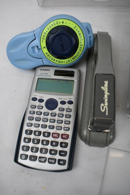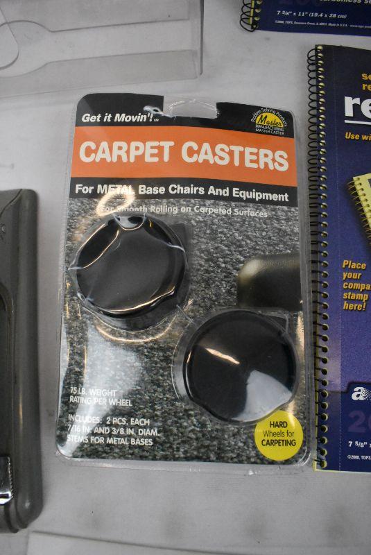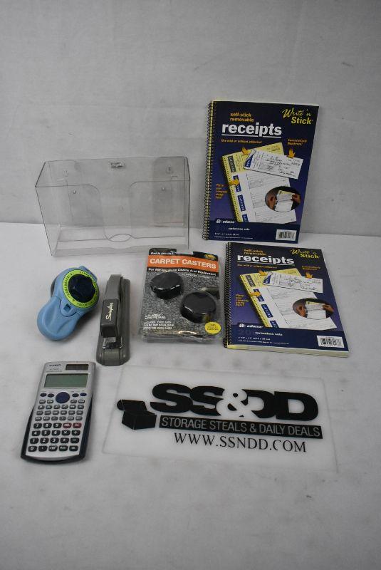 7 pc Office: Paper Organizer, Receipt Books, Carpet Casters, Swingline Stapler, Label Buddy, Calculator