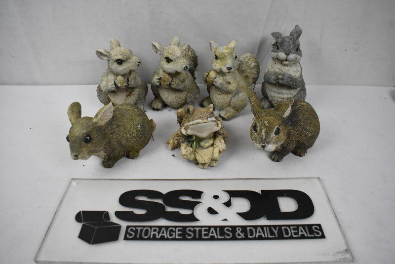 7 pc Outdoor Critters Decor: 3 Squirrels, 3 Bunnies, 1 Frog