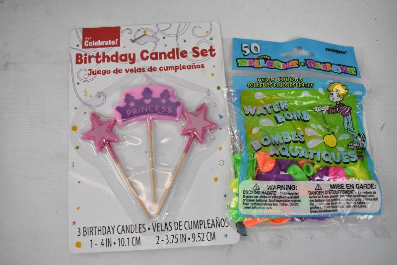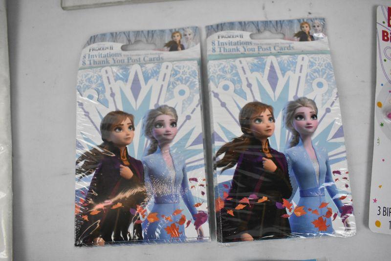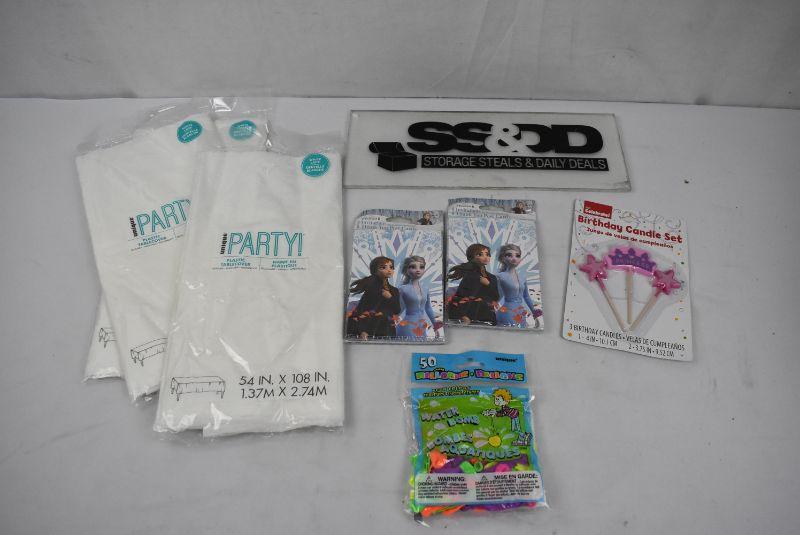 7 pc Party Lot: Disney Frozen Invitations and Thank You Cards for 16, Way to Celebrate Princess Stick Birthday Candles, 3-Pack, Latex Water Balloons, Neon, 50ct - New