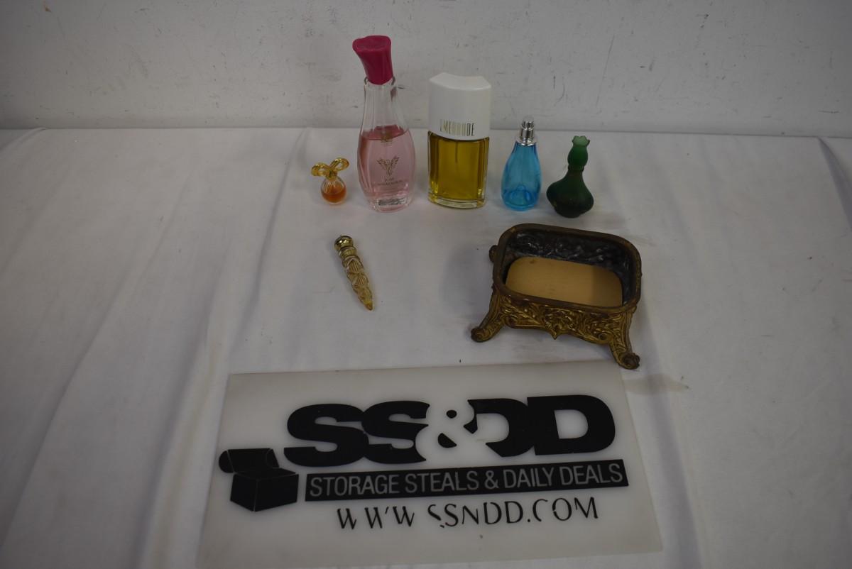 7 pc Perfume, Avon, Emeraude, Just Vivacious, Metal Trinket Box