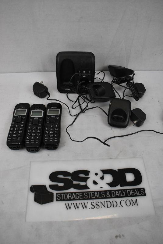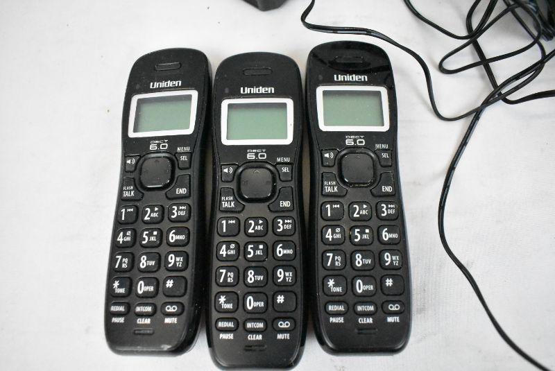 7 pc Uniden Cordless Phones: 1 base, 3 chargers, 3 handsets. Untested, as is
