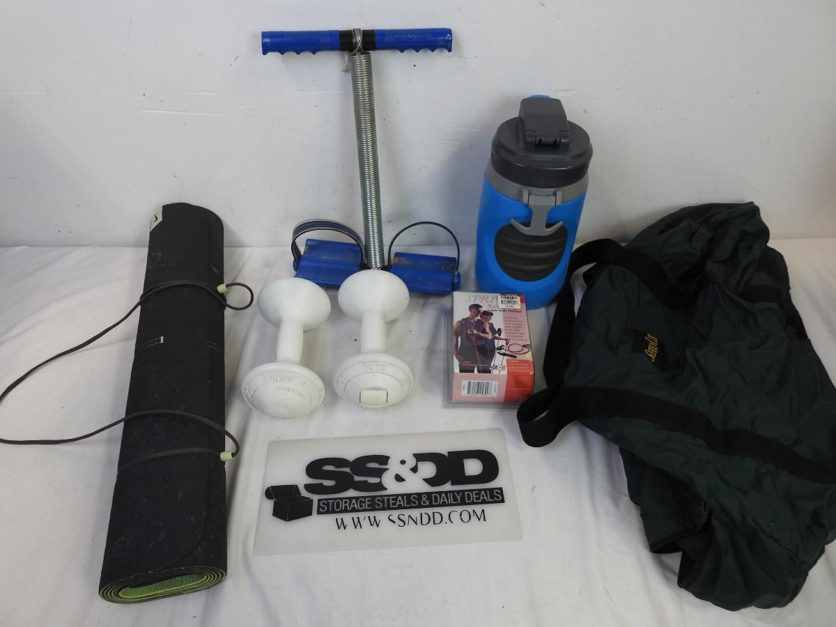 7 pc Workout Equipment, 1.5 Kilo Weights, Workout Mat, High Sierra Bottle