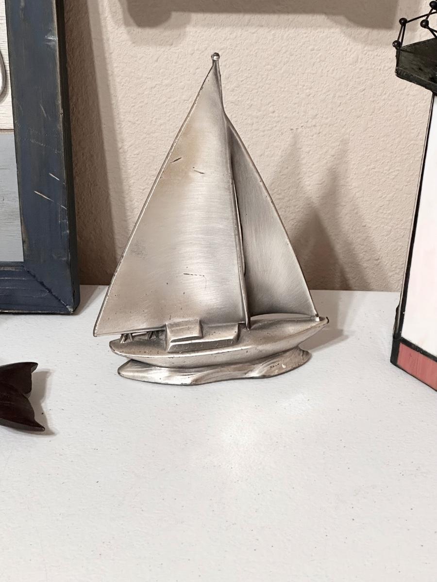 Pewter sailboat = 7” H ~