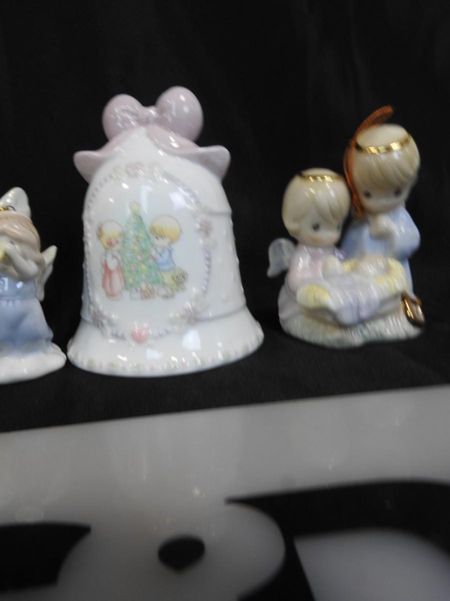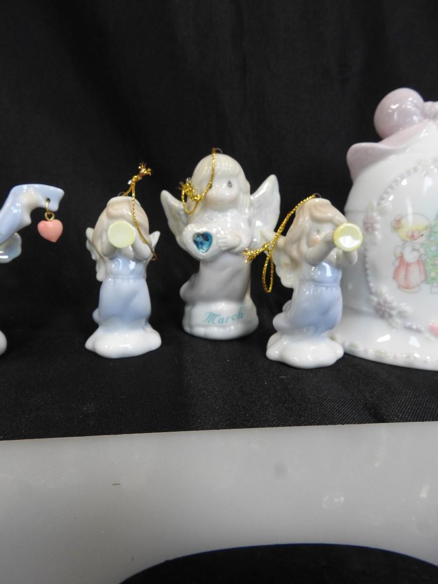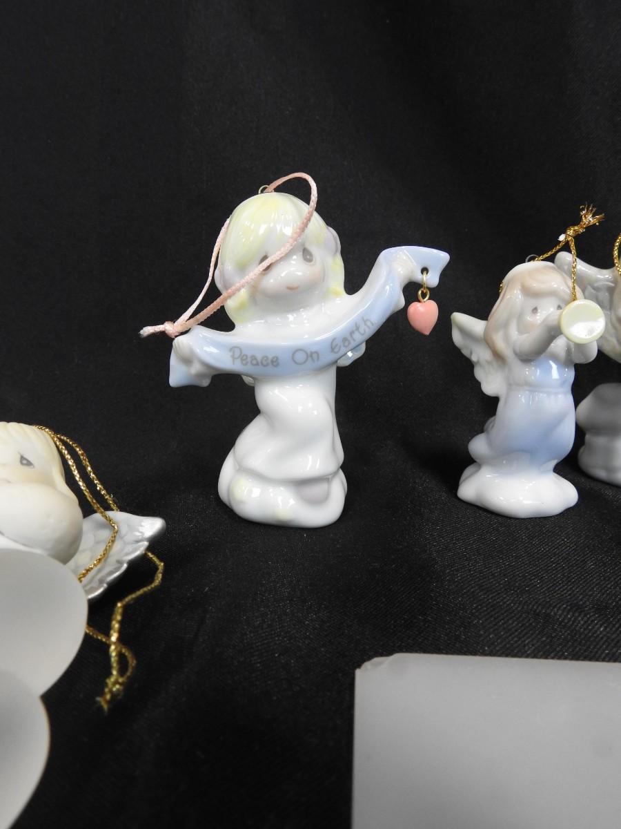 7 Piece Ceramic Christmas Ornaments: Angels, Bell; Jesus, Mary and Joseph