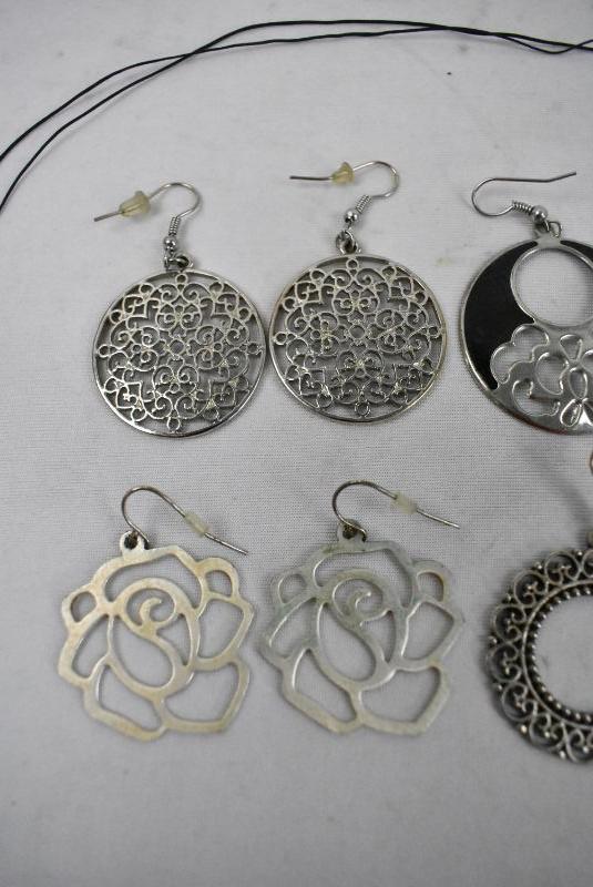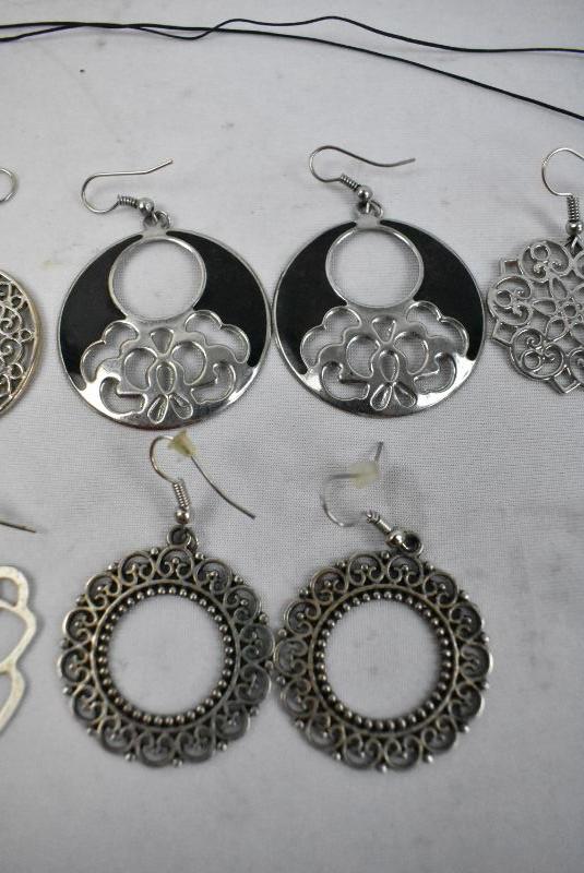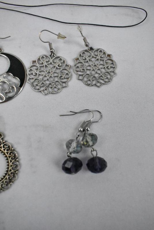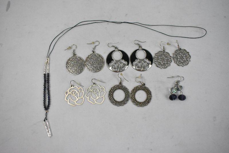 7 Piece Costume Jewelry: 6 Pairs of Earrings and 1 Necklace