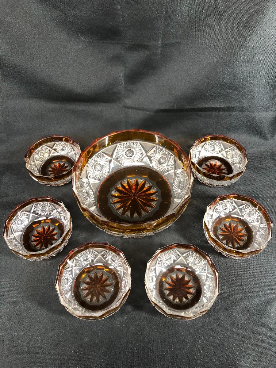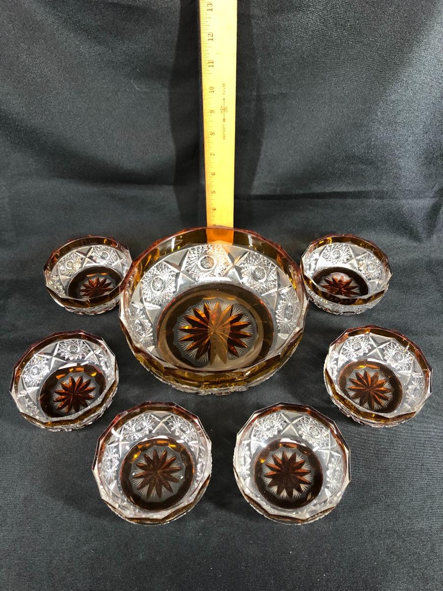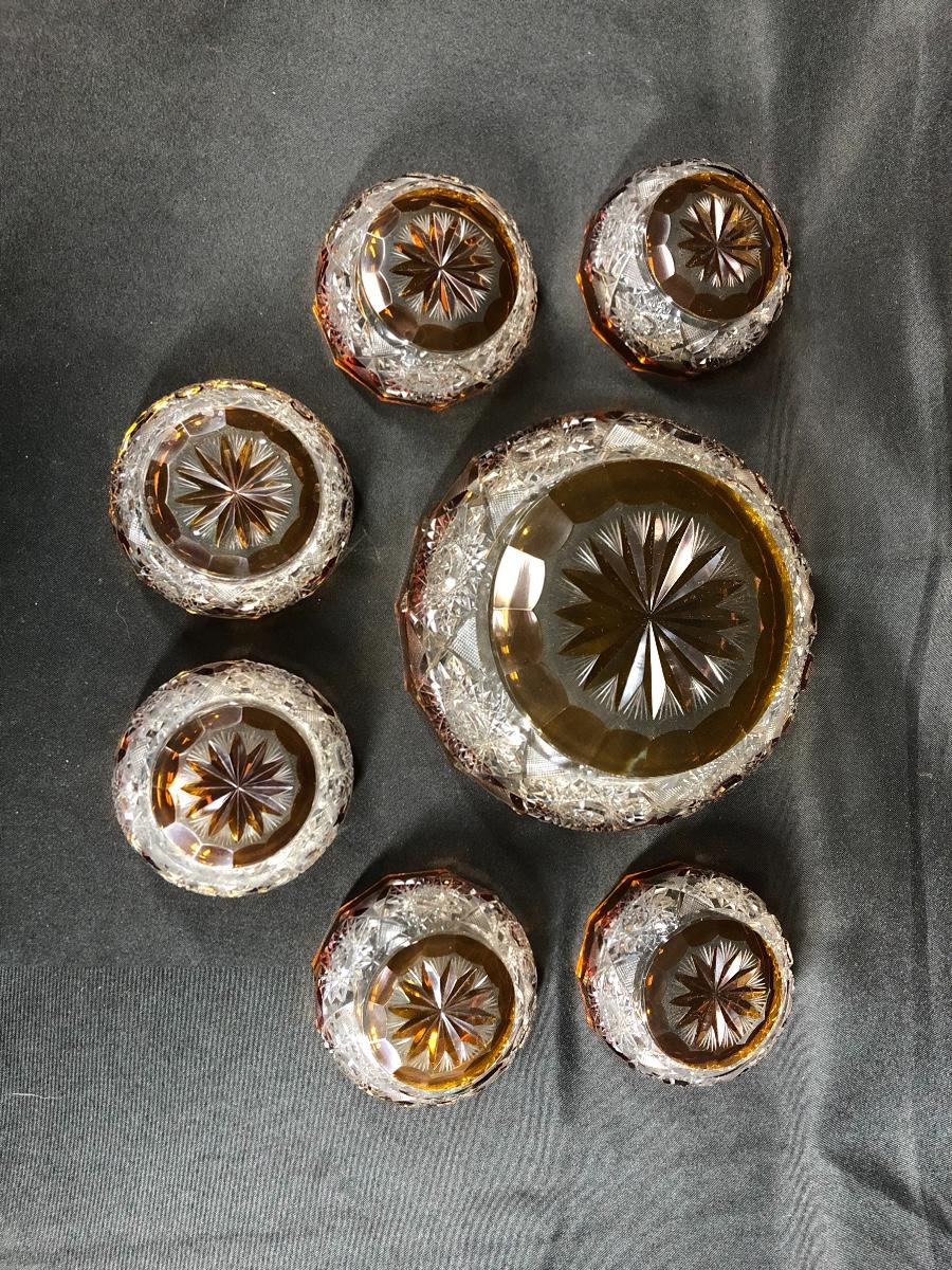 7 piece Crystal and amber bowl set