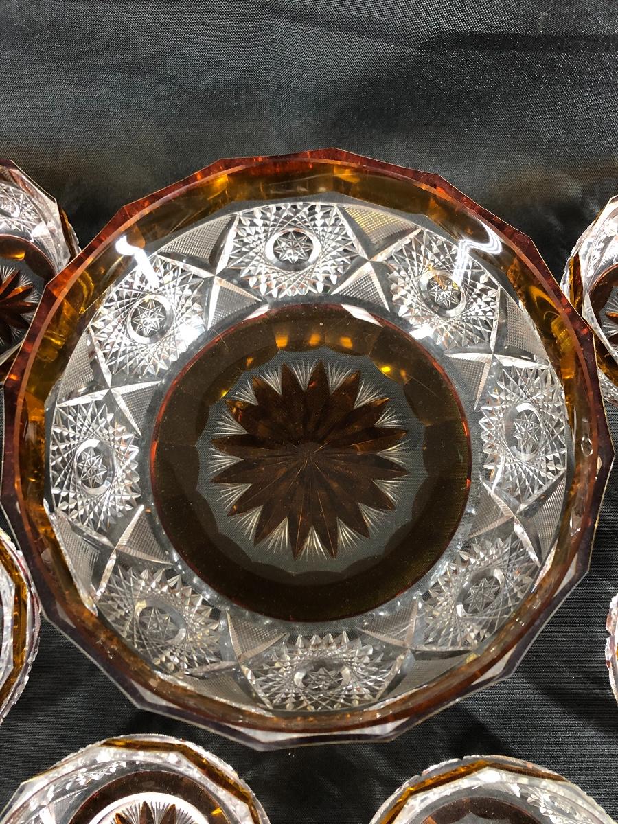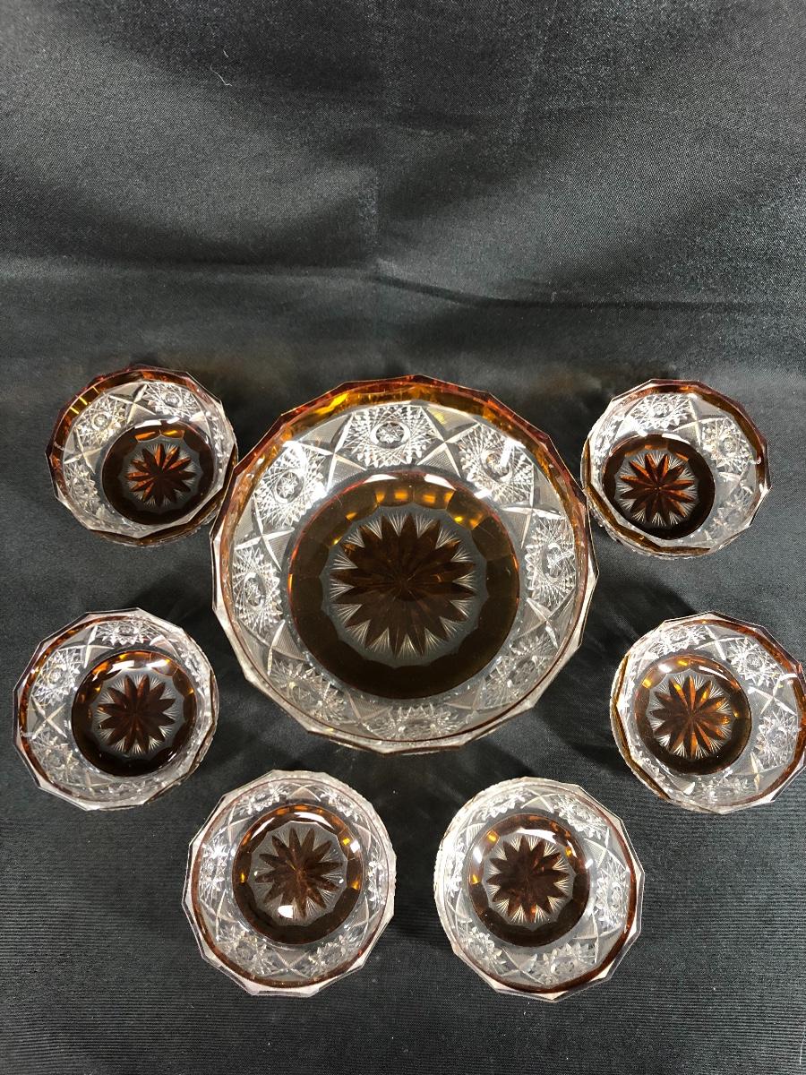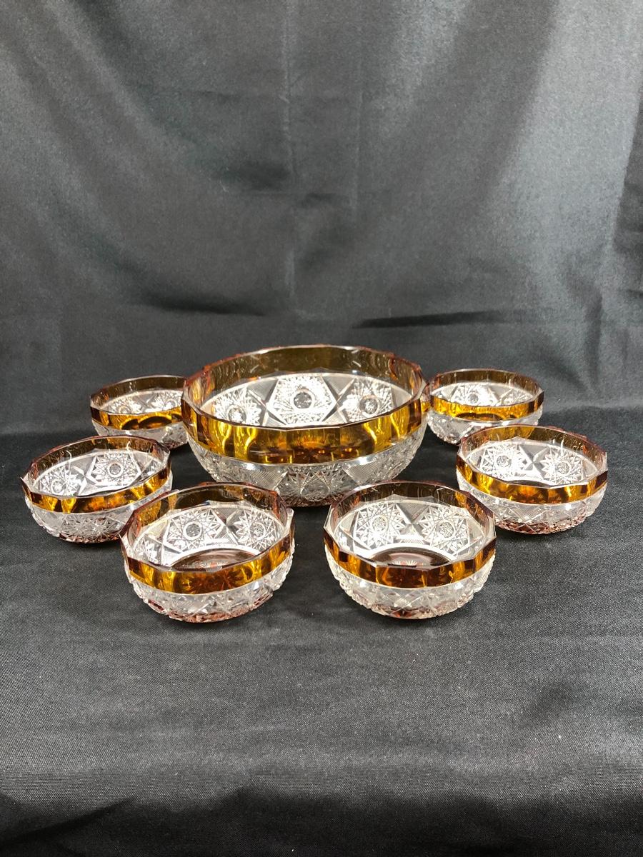 7 piece Crystal and amber bowl set