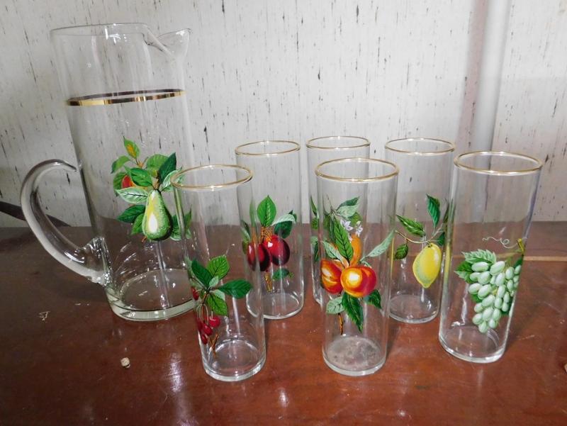 7 Piece Mid Century Lemonade Pitcher and Glass Set in very good condition.