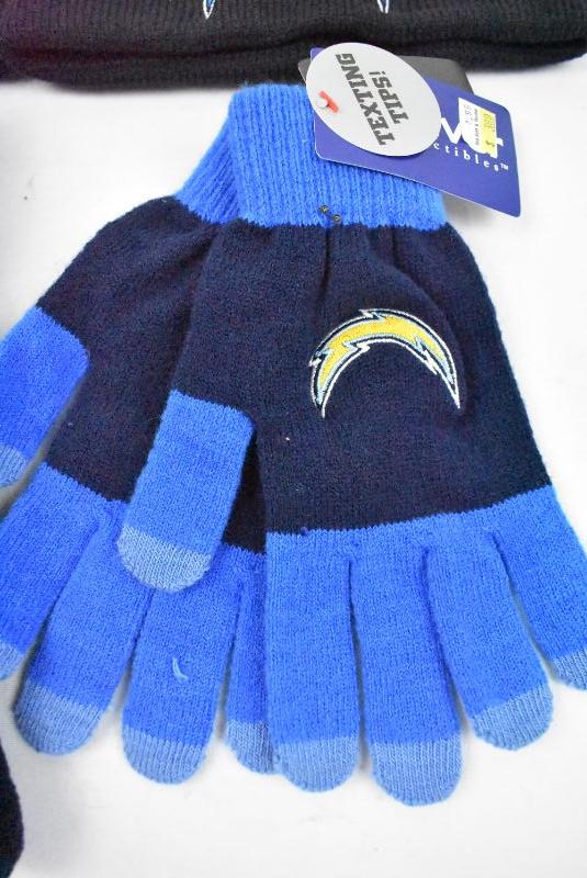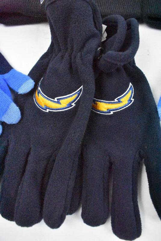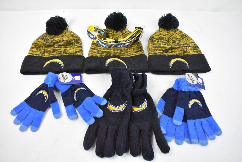 7 Piece NFL Chargers: 3 Hats, 3 Pairs of Gloves, & 1 Dog Collar - New