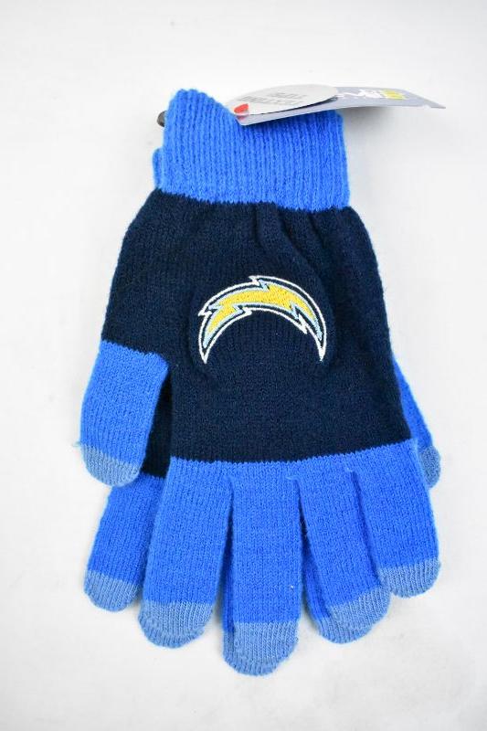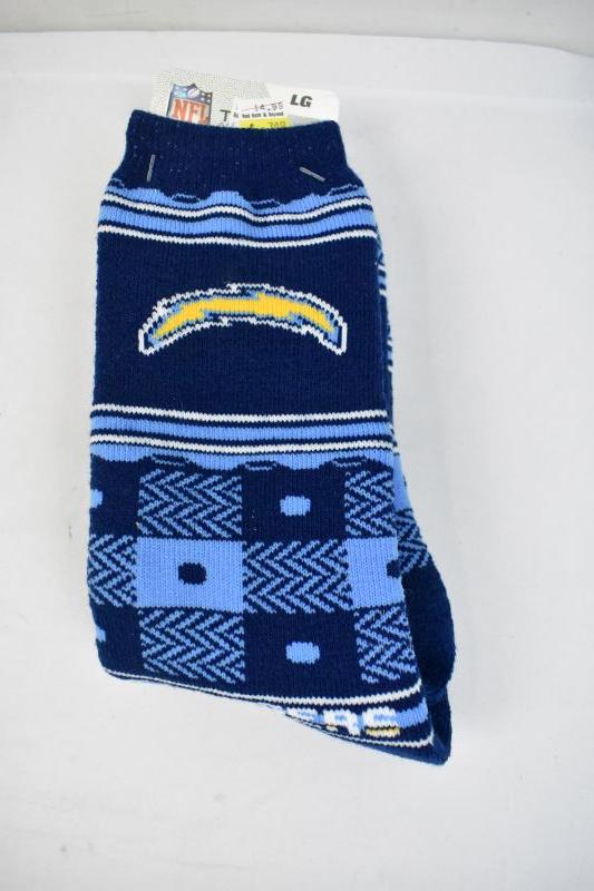 7 Piece NFL Chargers Cold Weather Wear: 2 Hats, 1 Scarf, 2 Pair of Socks 2 Pair of Gloves - New