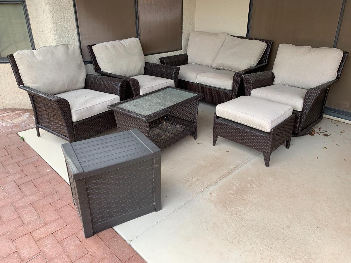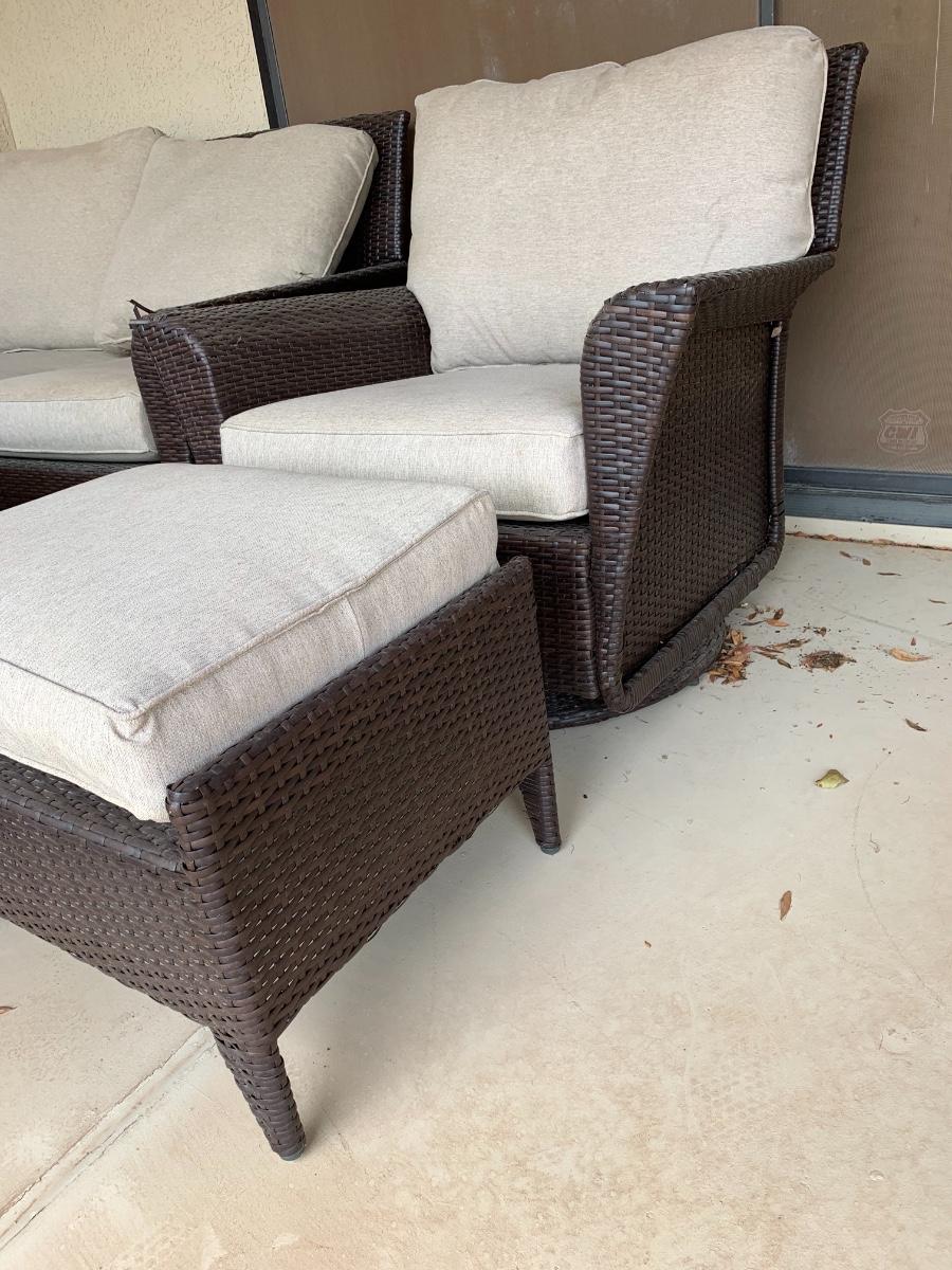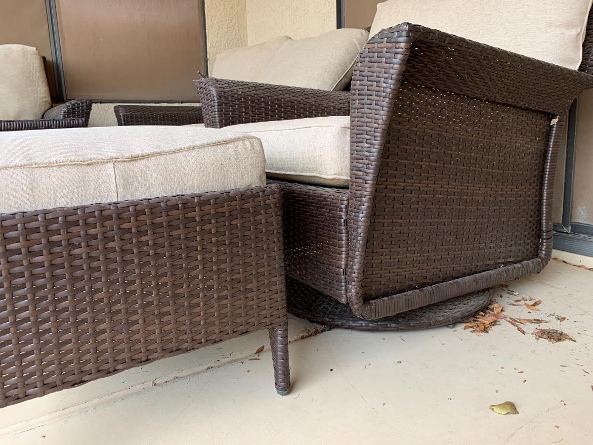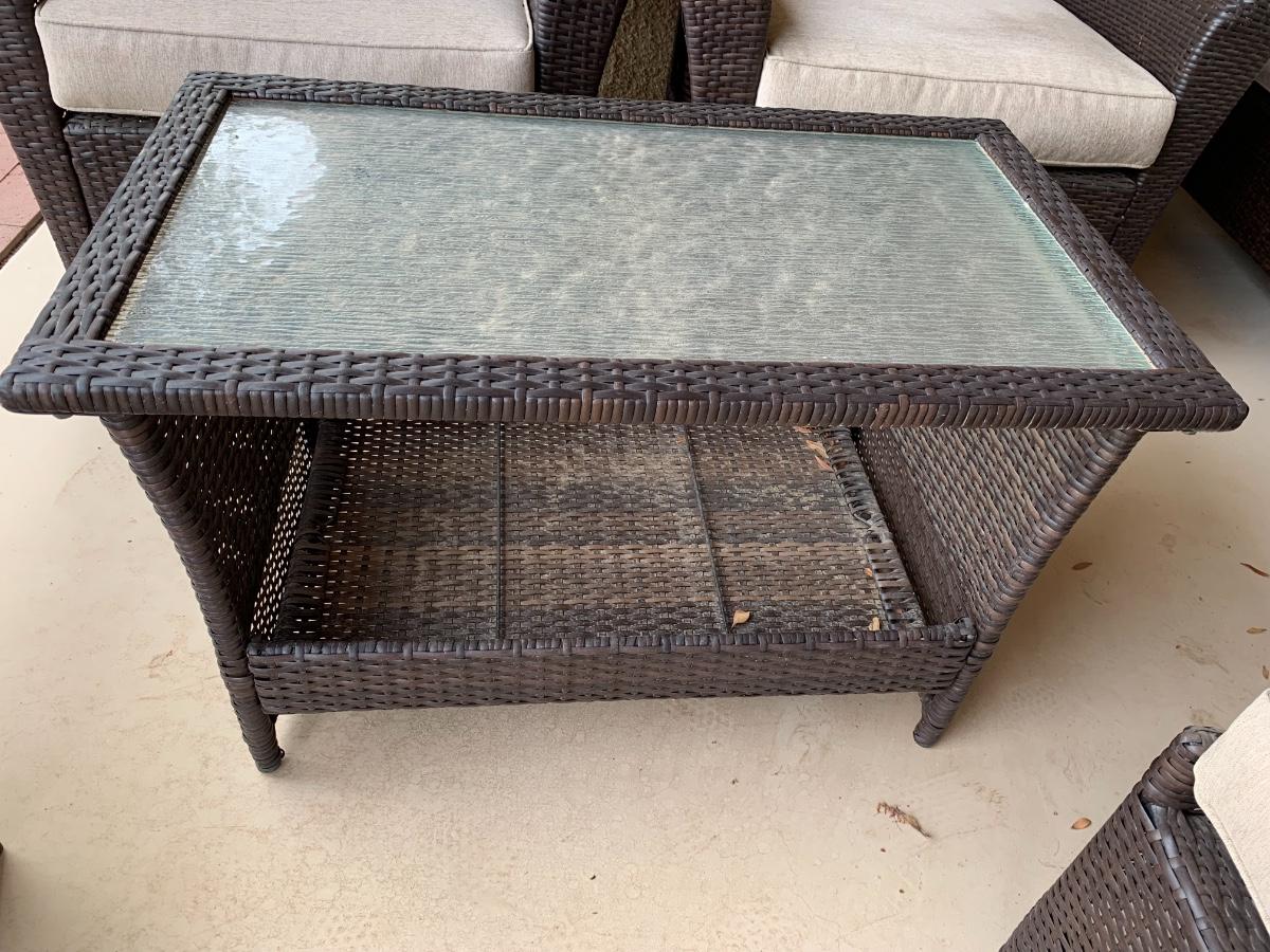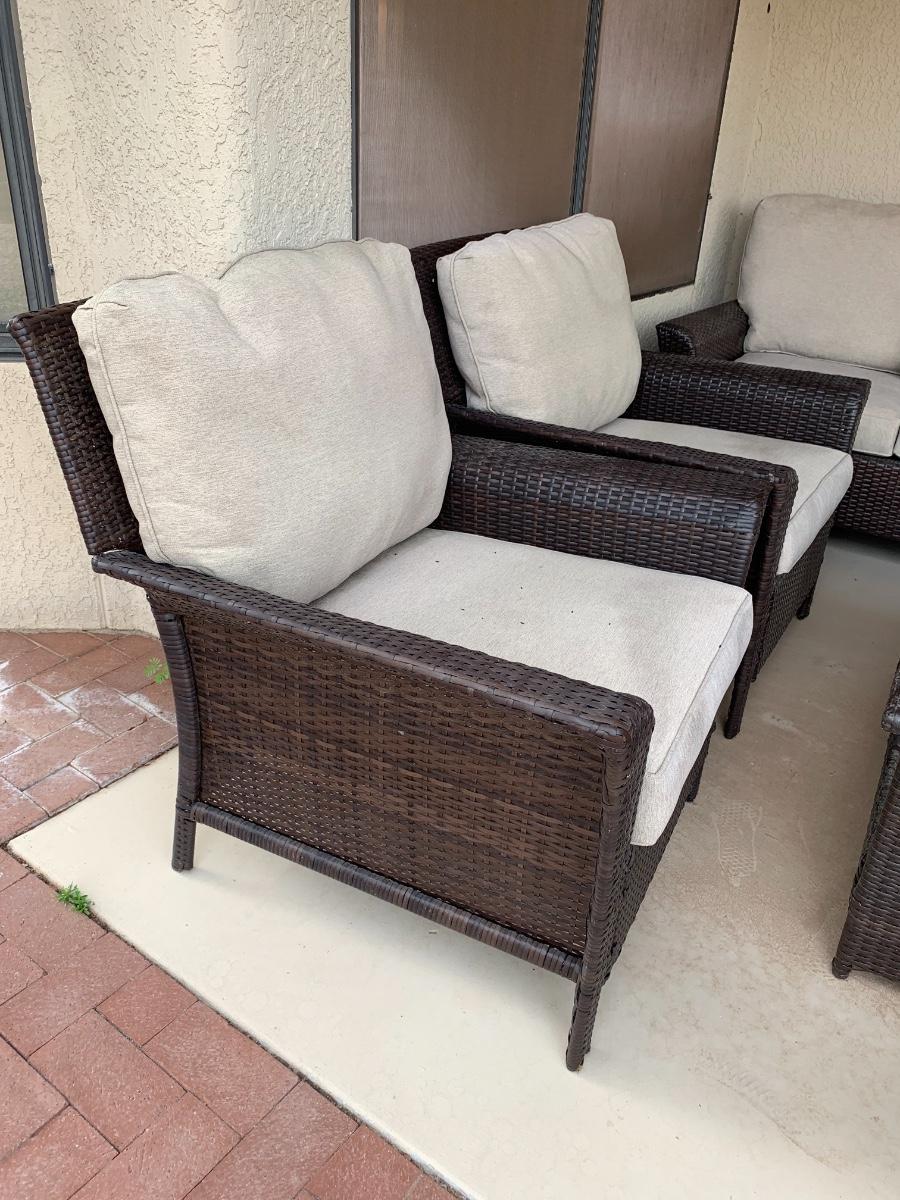 Gorgeous nearly brand new 7 piece patio set in excellent condition. Perfect to spruce up your backyard space just in time for Tucson’s hot months! (Love seat, 56 inches in length, 30 inches in depth), (each chair, 33 1/2 inches in length, 30 inches in depth), (table, 34 inches in length, 20 inches in width, 20 1/2 inches in height).