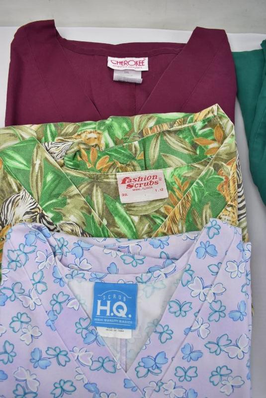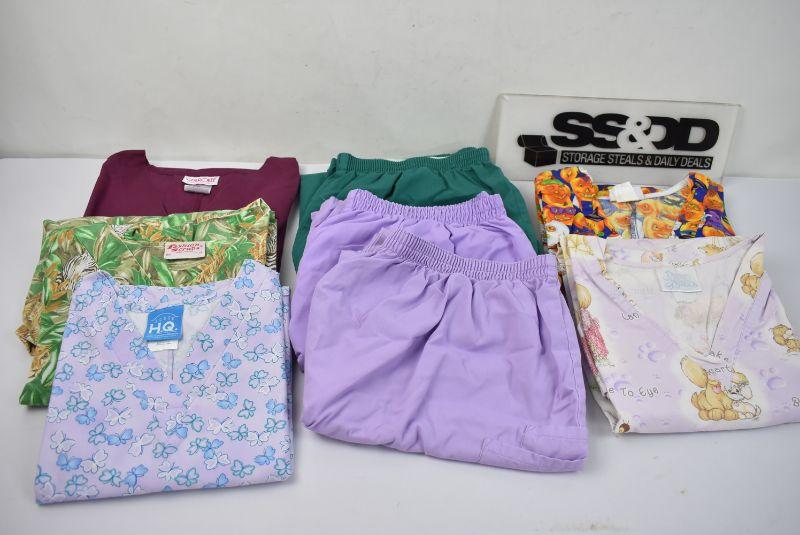 7 Piece Scrubs Lot: 4 Tops and 3 Bottoms; Sizes 2XL, 3XL & 4XL