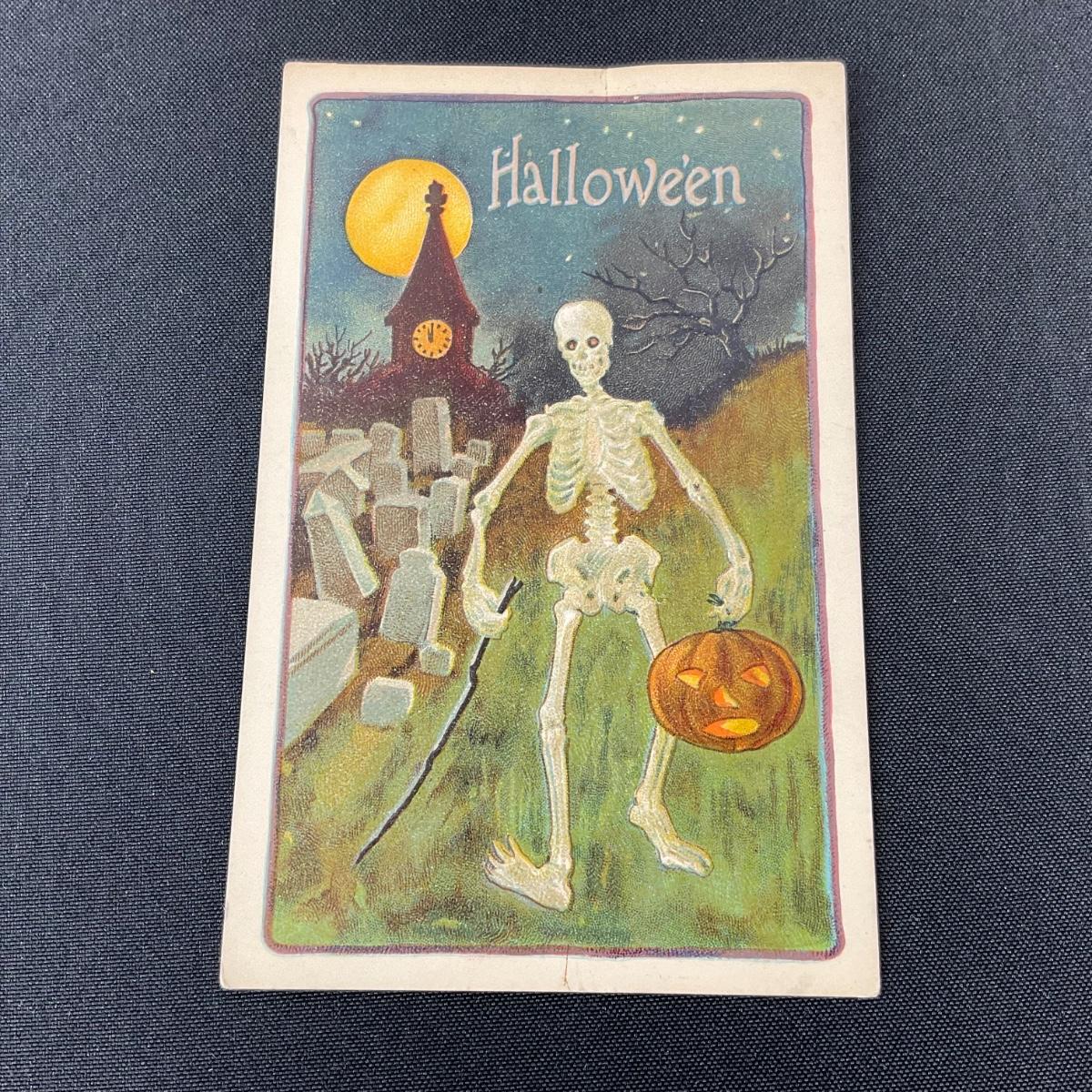 One vintage “Halloween” series #980 postcard. Please see photos for details and condition. Any condition statement is given as a courtesy to a client, is an opinion, and should not be treated as a statement of fact. Reference to condition written, oral or within a condition report shall not be regarded as a full account of condition and may not include all defects, alterations, or restorations. Absence of a condition report does not imply a lot is flawless or lacking imperfections or damage. Katherine’s Auction & Appraisal Service shall have no responsibility for any error or omission. Returns shall not be accepted on the basis of condition. ::: Shipping is available on this lot. If you require shipping you must let us know at the close of the auction. We will coordinate with you after the item has been won. Shipping fees will include insurance up to or exceeding the value of all items being mailed. If you have any questions regarding this lot please contact the auctioneer either via this website, by direct email or by phone. PICK UP TIMES and other important information can be found in the TERMS and DESCRIPTION of the auction. Please take a look for pertinent information. Thanks!