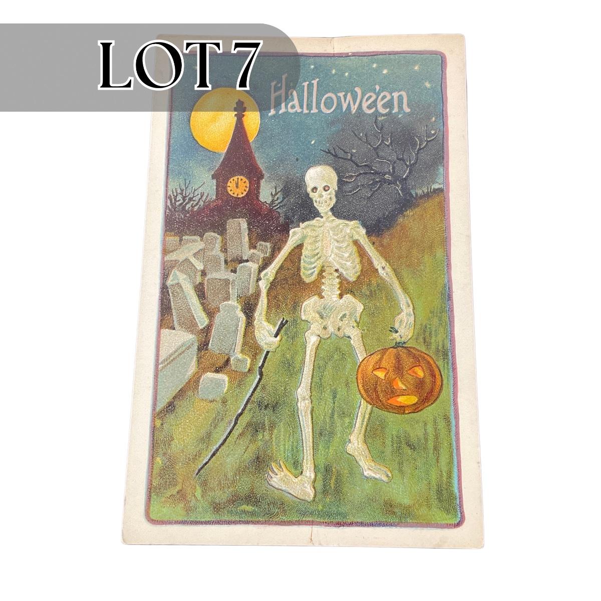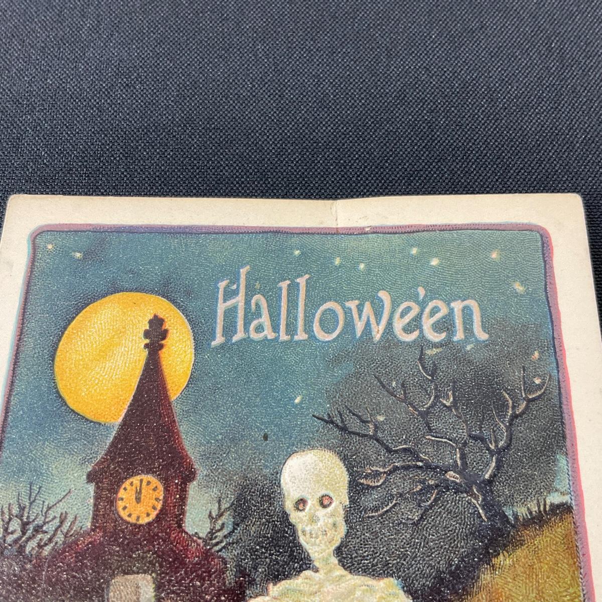 -7- POSTCARD | Vintage Halloween Spooky Skeleton Postcard