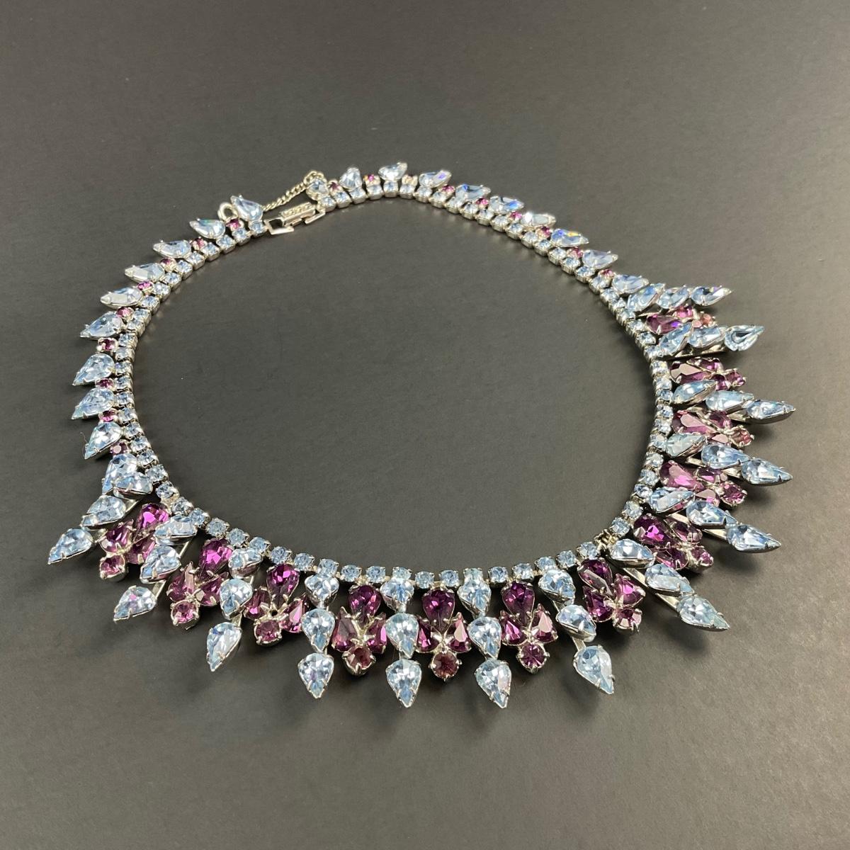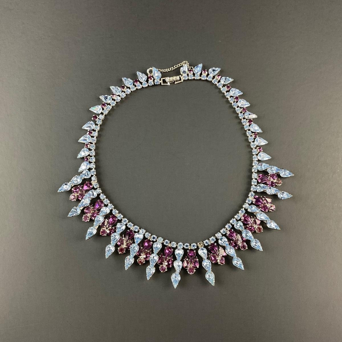-7- RHINESTONE | 1950’s Teardrop Blue & Purple Necklace