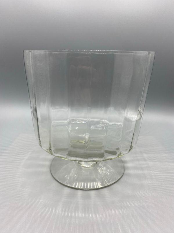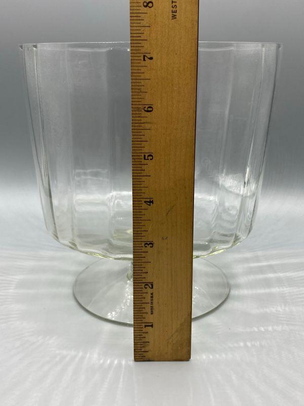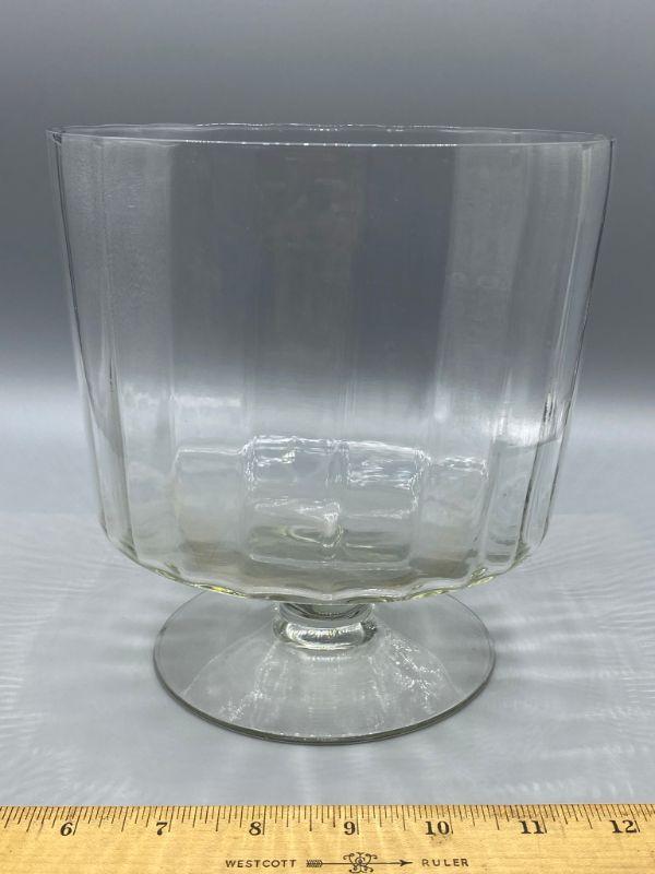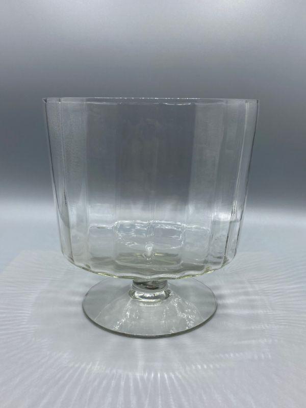 Large trifle Dish. Footed bowl stands a little over 7" tall. Has a ribbed look to it. Good condition. No chips.