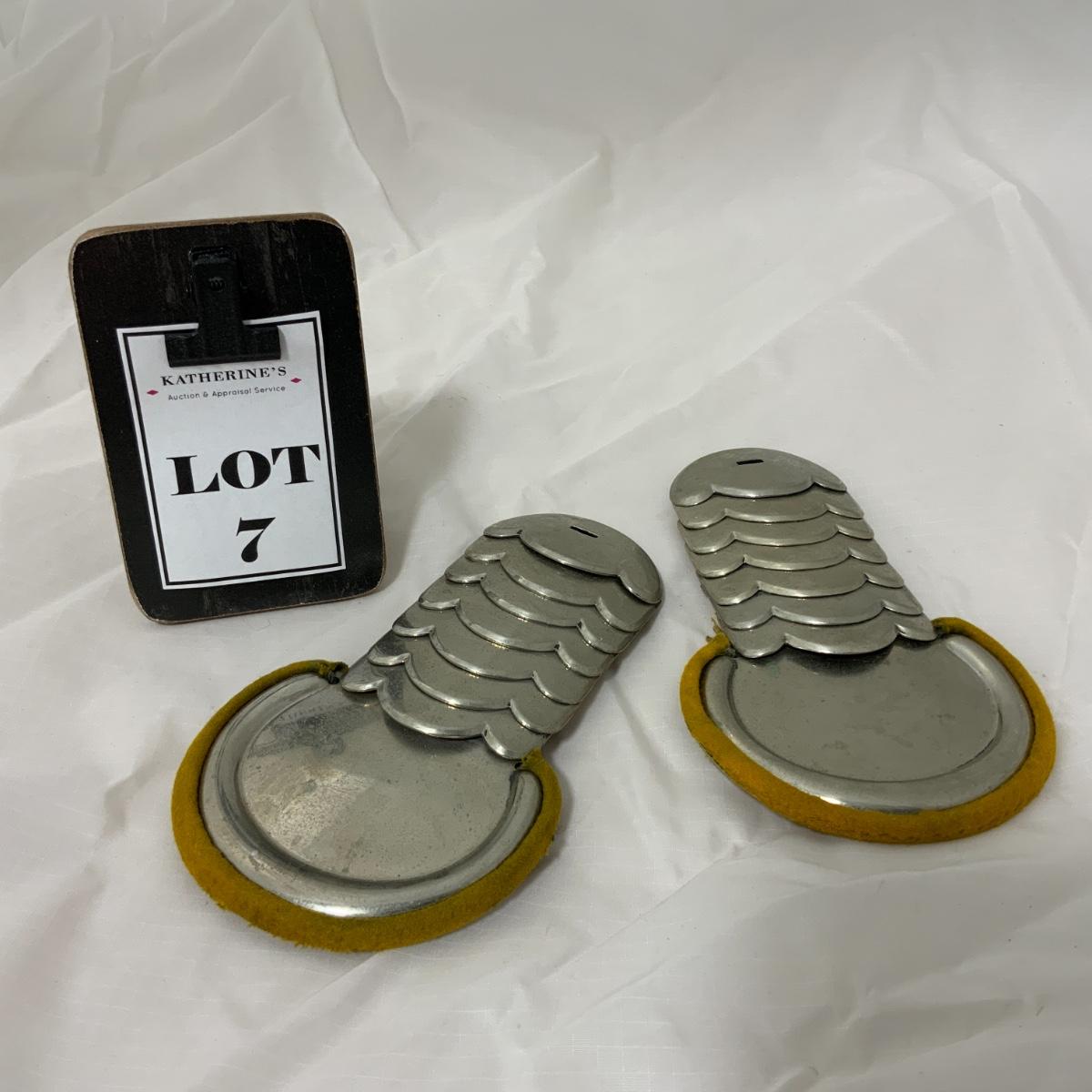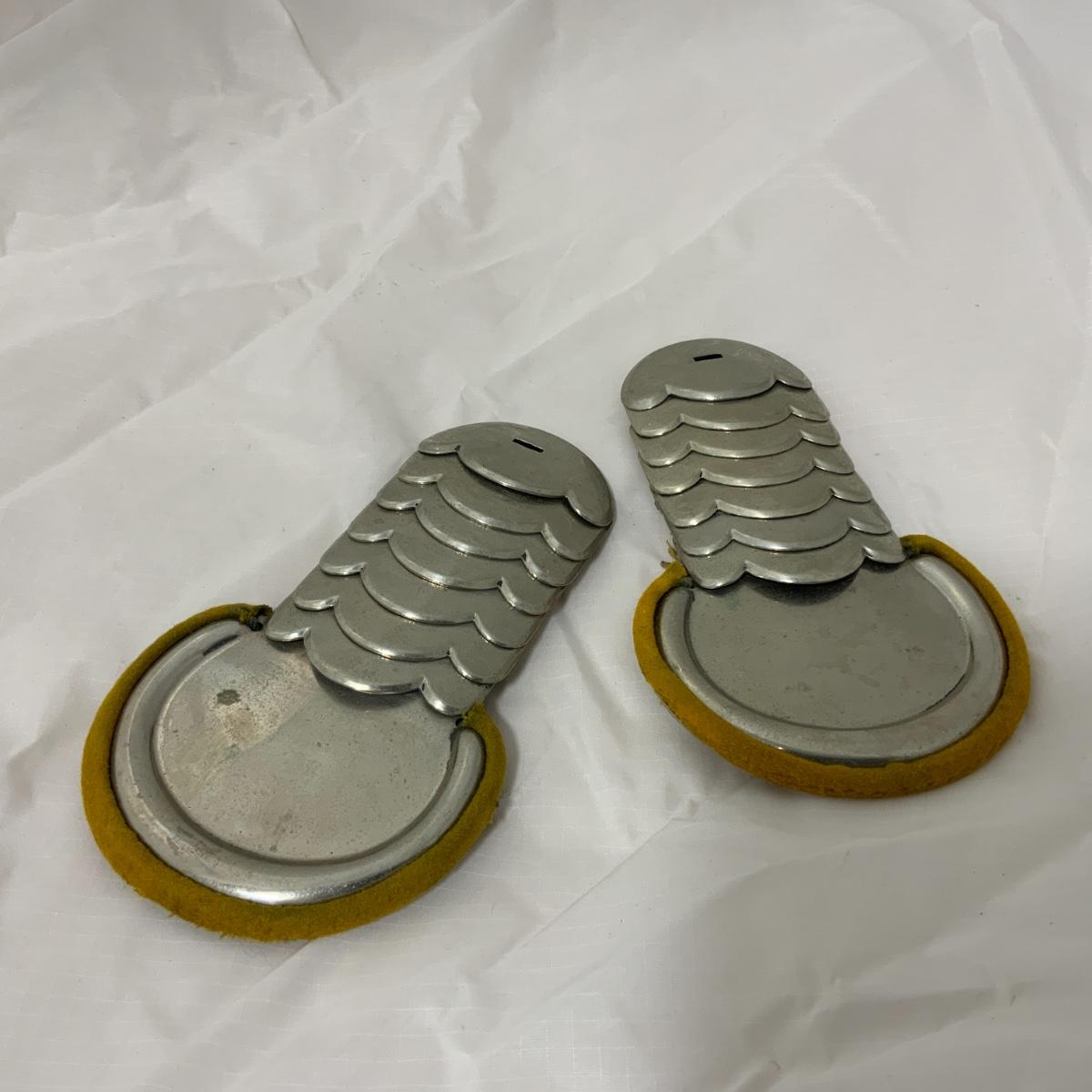 From the Estate of Peter Radovanovich: Set of two Russian Cavalry Epaulettes. These would have bands across them and other decor to denote rank or years of service. They are in nice condition for their age. A fine addition to any Russian Military Collection. Please see photos for details and condition. ::: Shipping is available on this lot. If you require shipping you must let us know at the close of the auction. We will coordinate with you after the item has been won. Shipping fees will include insurance up to or exceeding the value of all items being mailed. If you have any questions regarding this lot please contact the auctioneer either via this website, by direct email or by phone. PICK UP TIMES and other important information can be found in the TERMS and DESCRIPTION of the auction. Please take a look for pertinent information. Thanks!