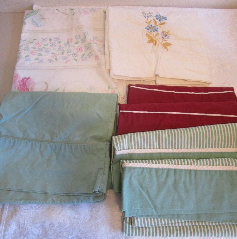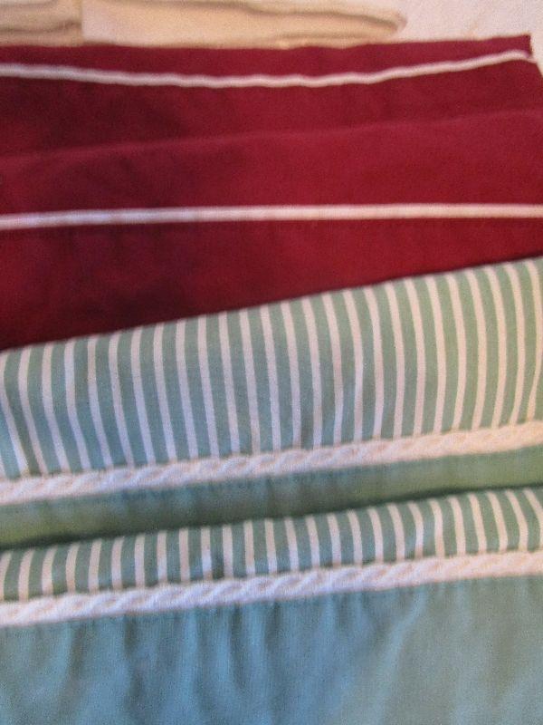 1- White with embroidered flowers, 1-printed flowers, 1- sea green, 2- burgundy with white stripe, 2 sea green striped