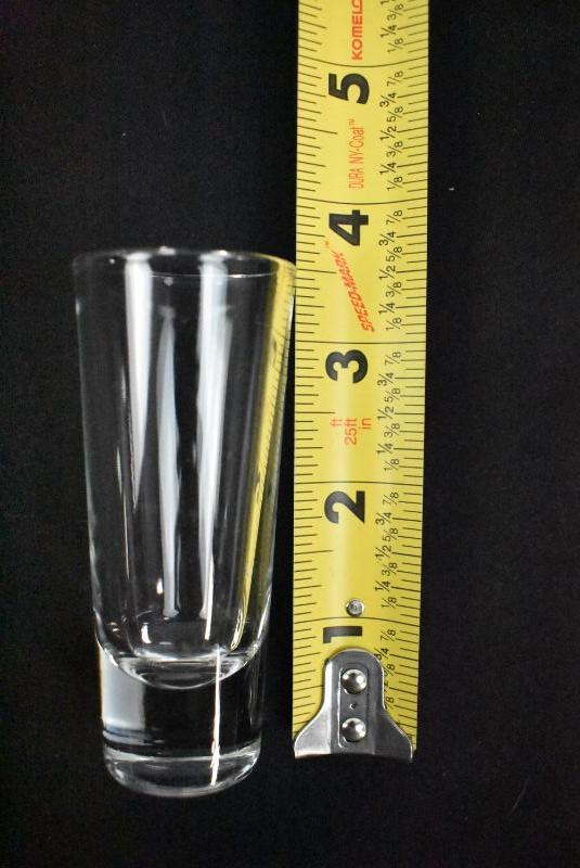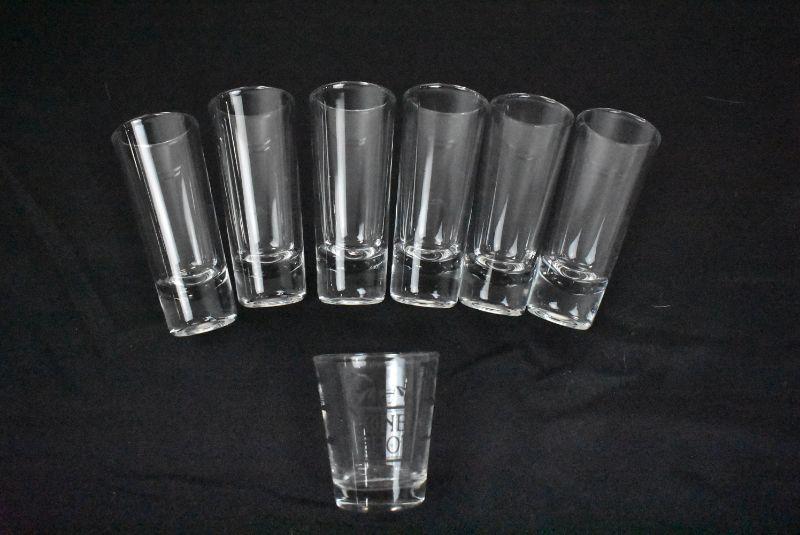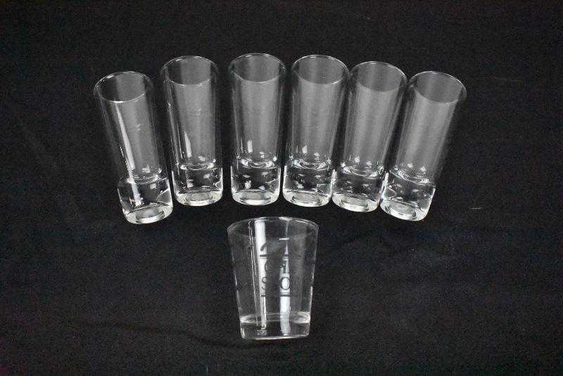 7 Shot Glasses: 6 Plain/Taller 1 Shorter with Measurements