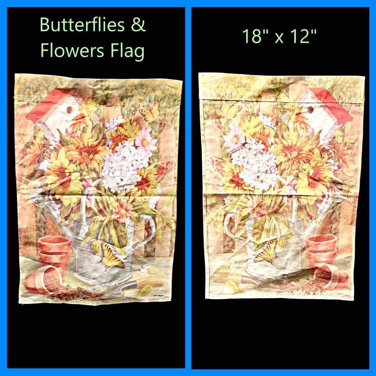 - Orange/Yellow/Green/White Butterfies & Flowers Flag 18" x 12"